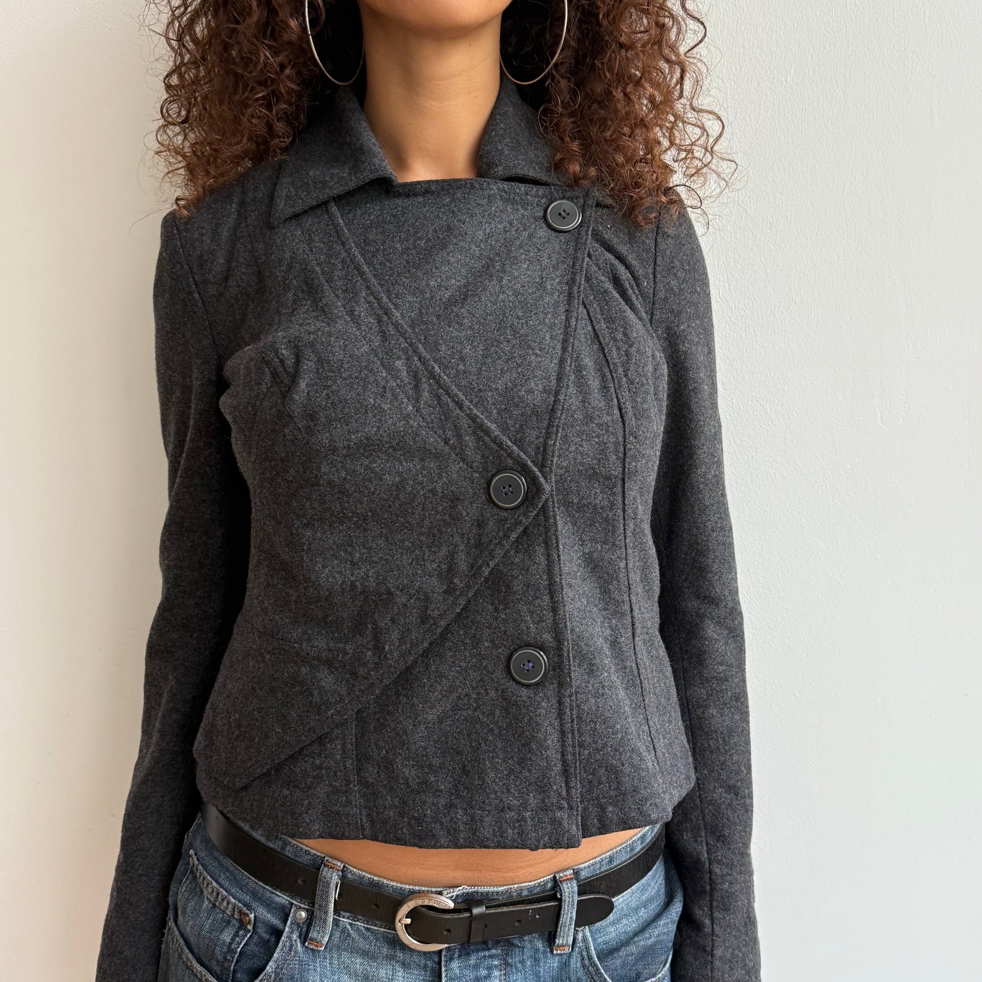 Charcoal grey asymmetric peacoat - feels like wool but there is no composition label