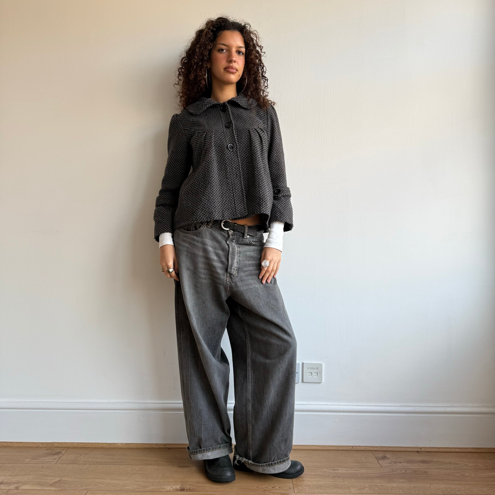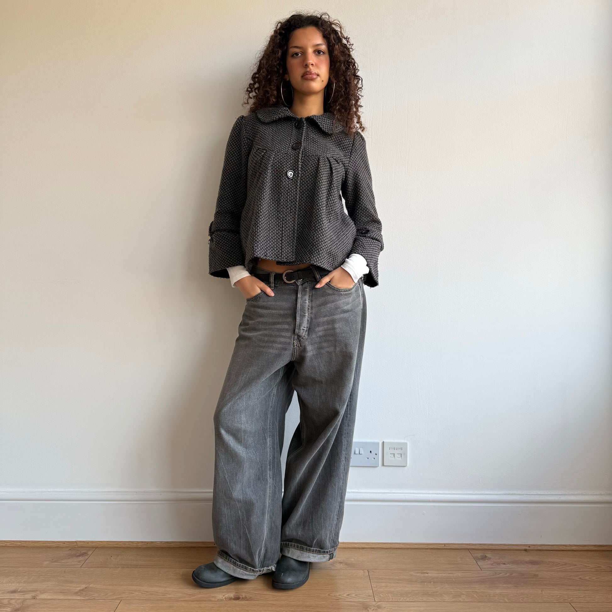 Grey houndstooth peacoat - Size M