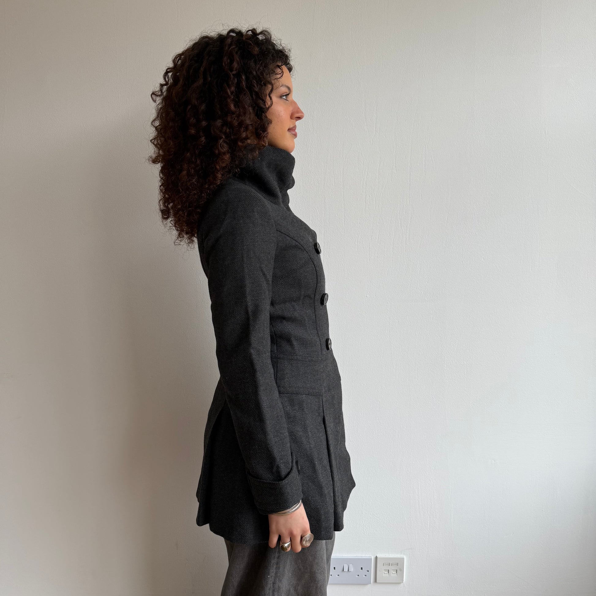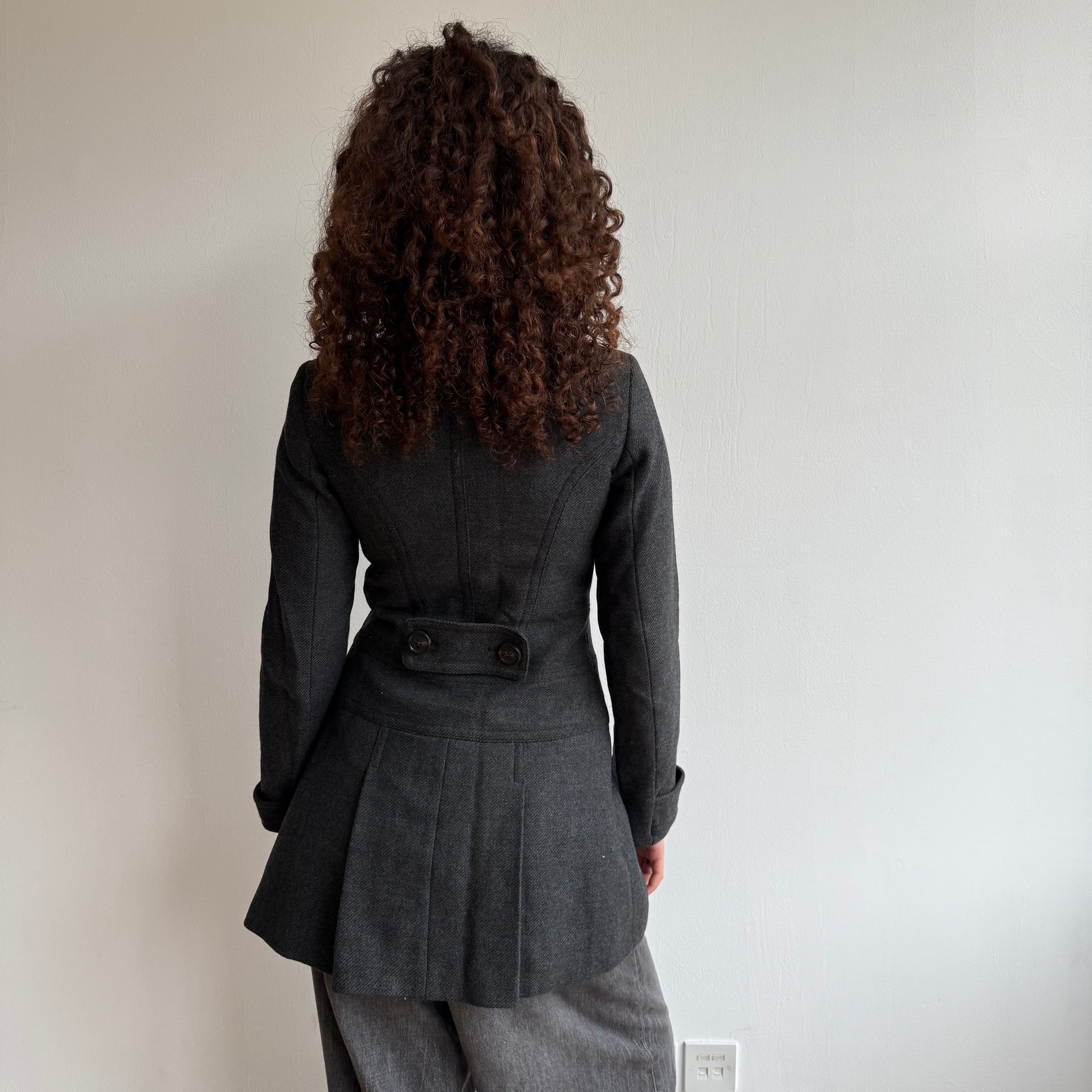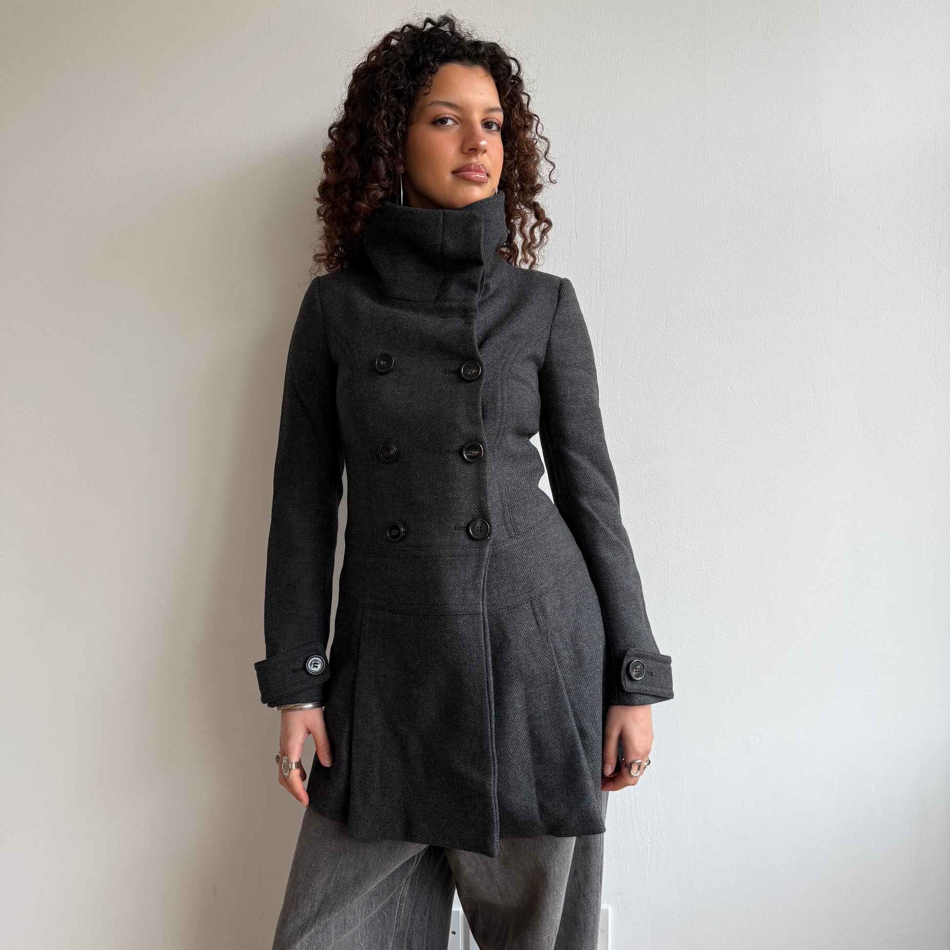 Charcoal grey 100% wool double breasted coat with pleated skirt (like peachy den!)