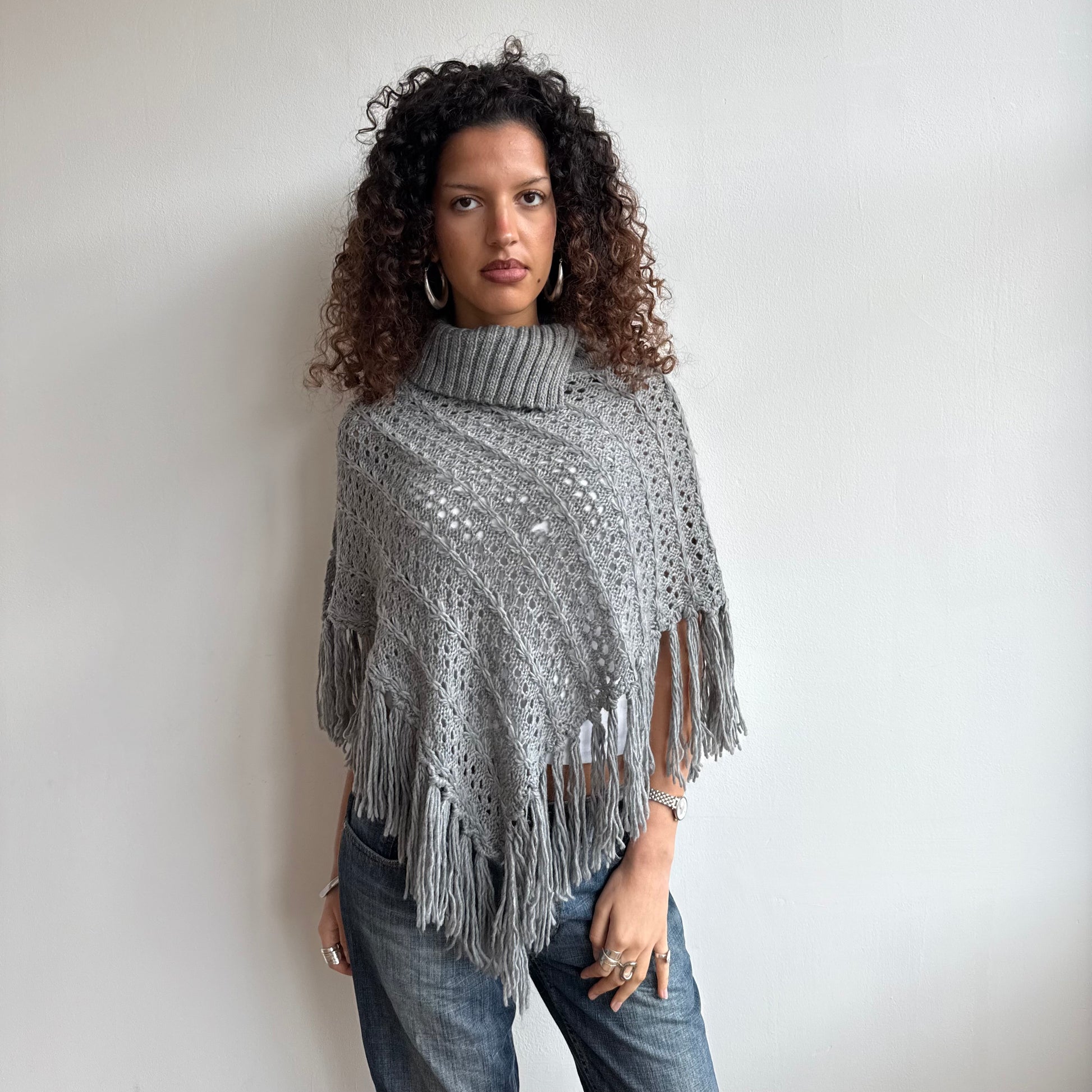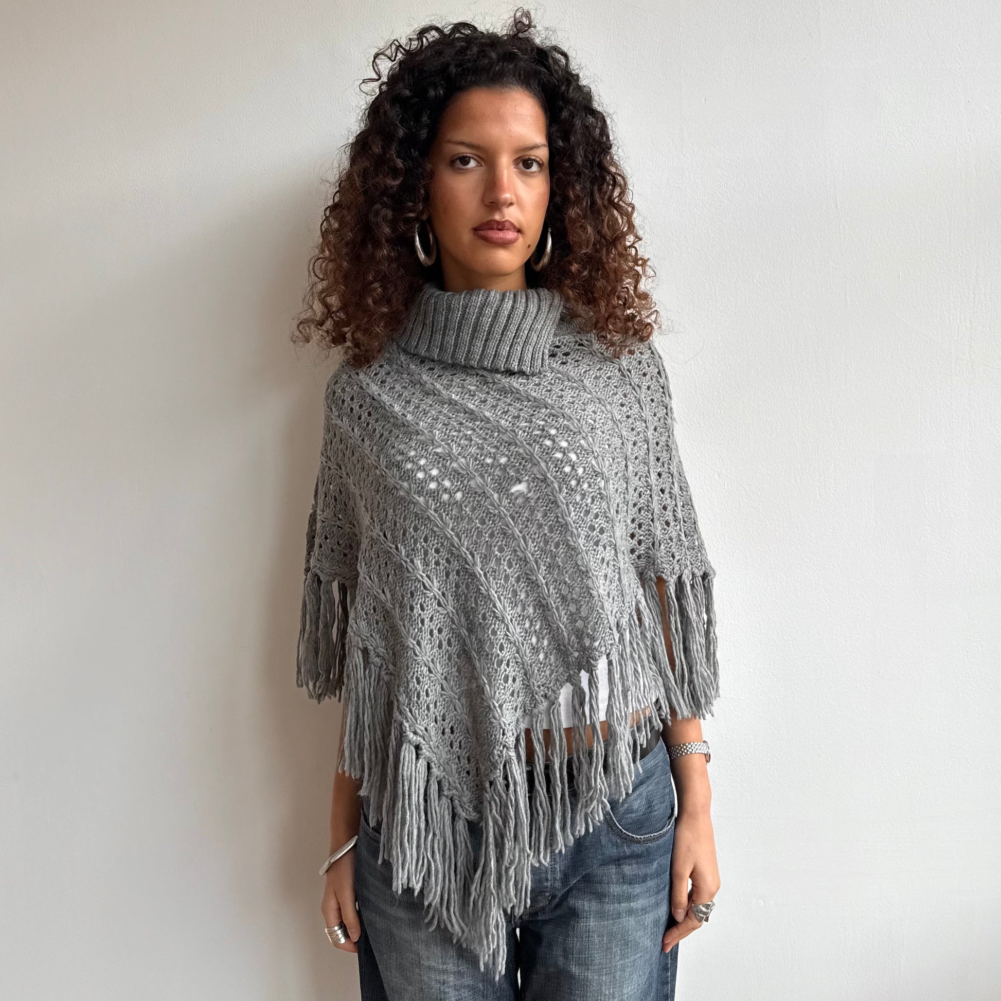 Grey chunky knit poncho with roll neck - similar pictured in Pinterest!