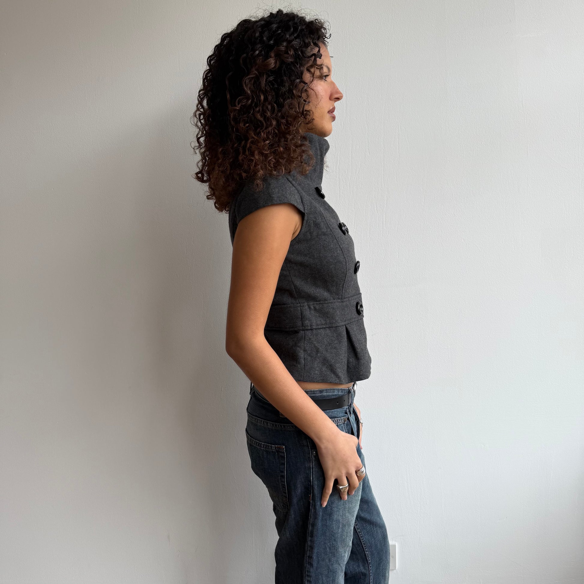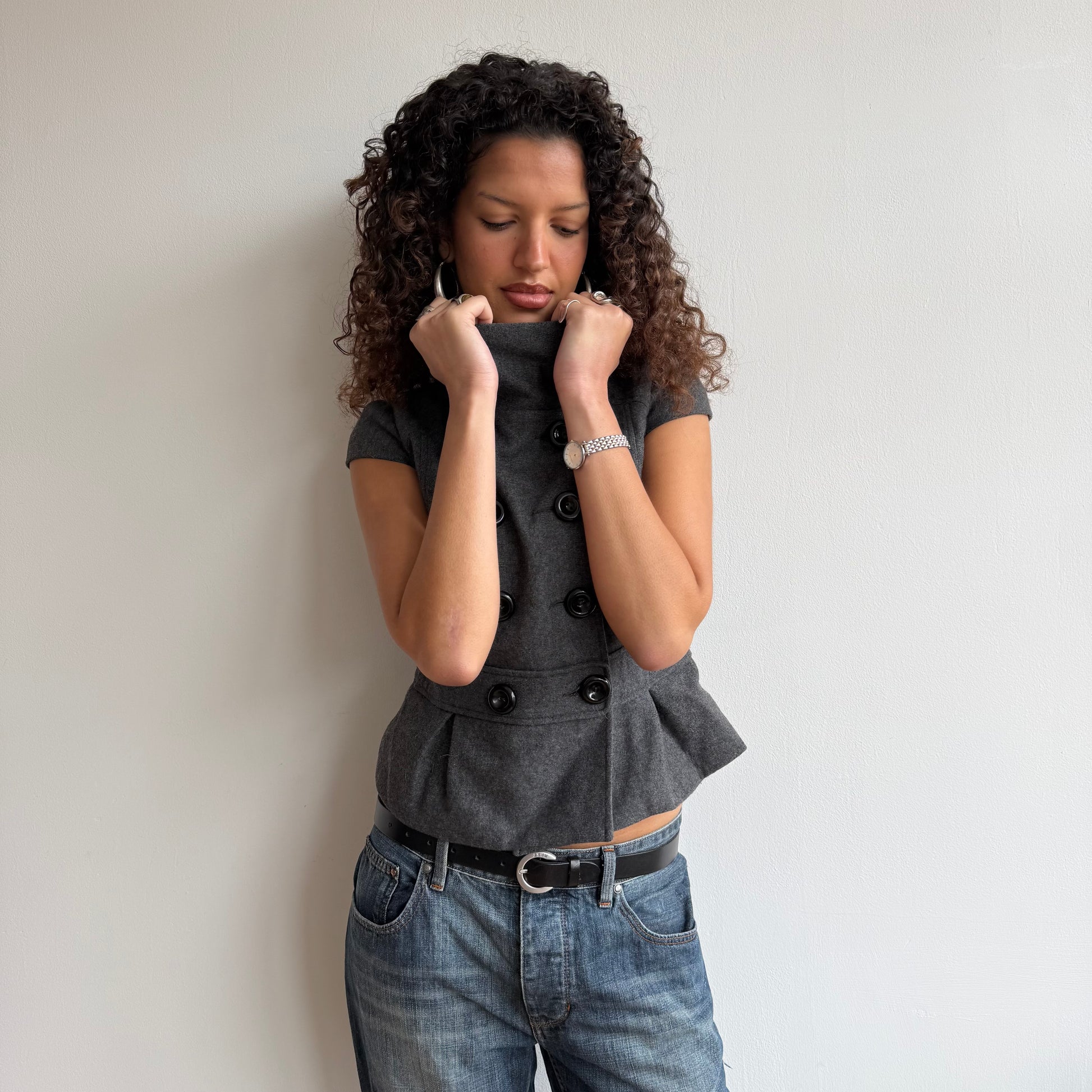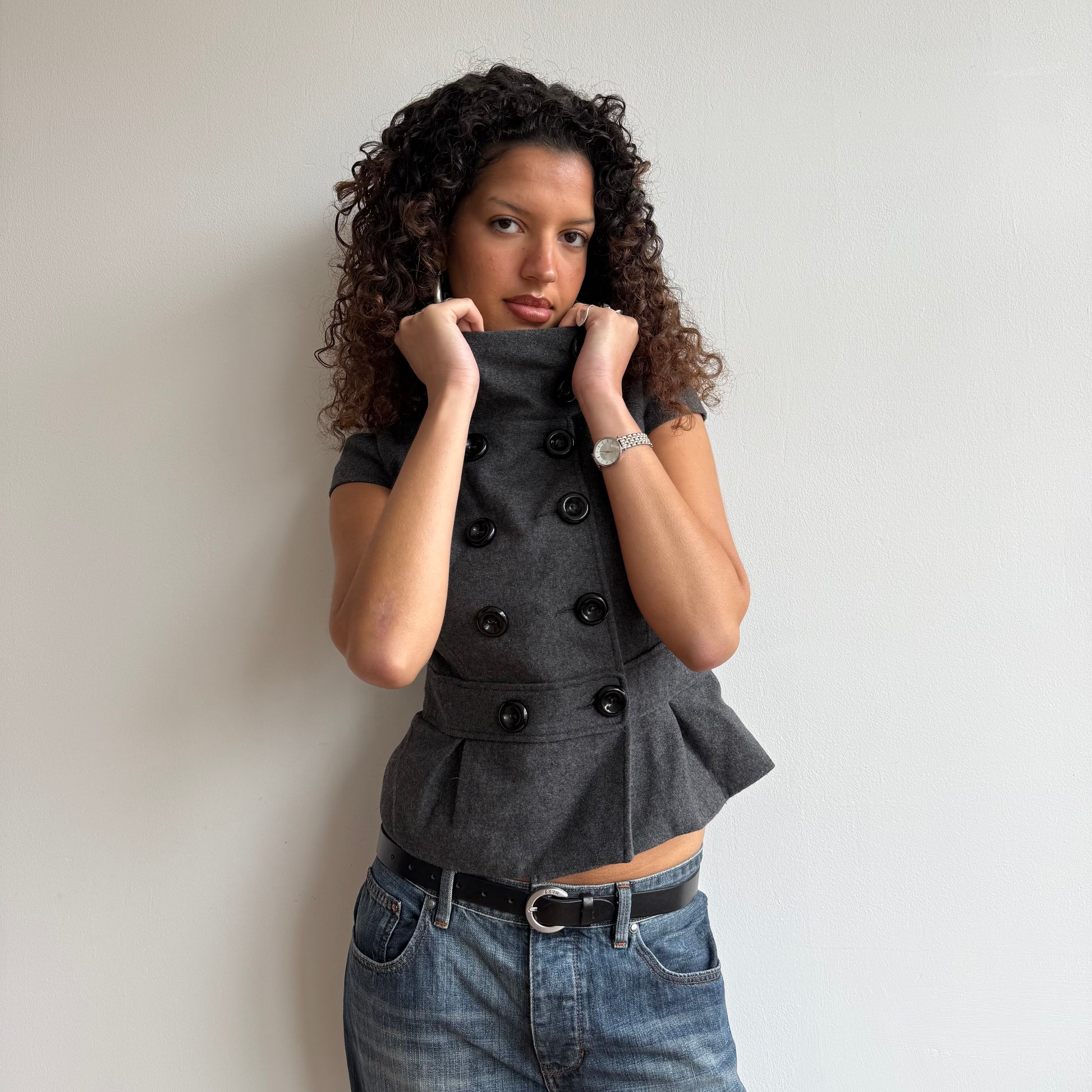 Charcoal grey short sleeve peacoat