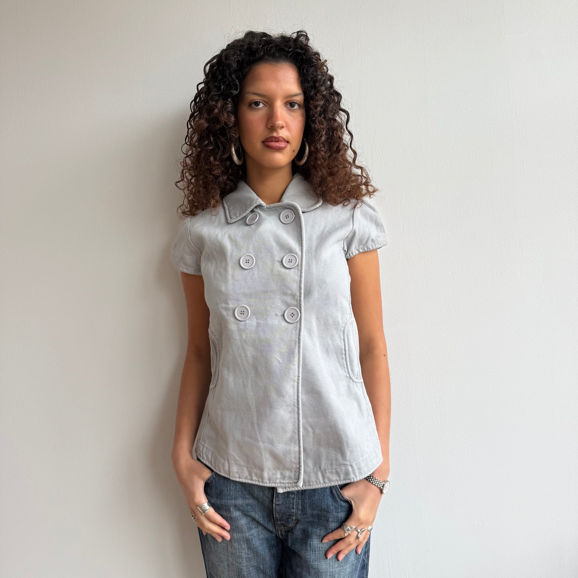 Grey short sleeve peacoat - Size M