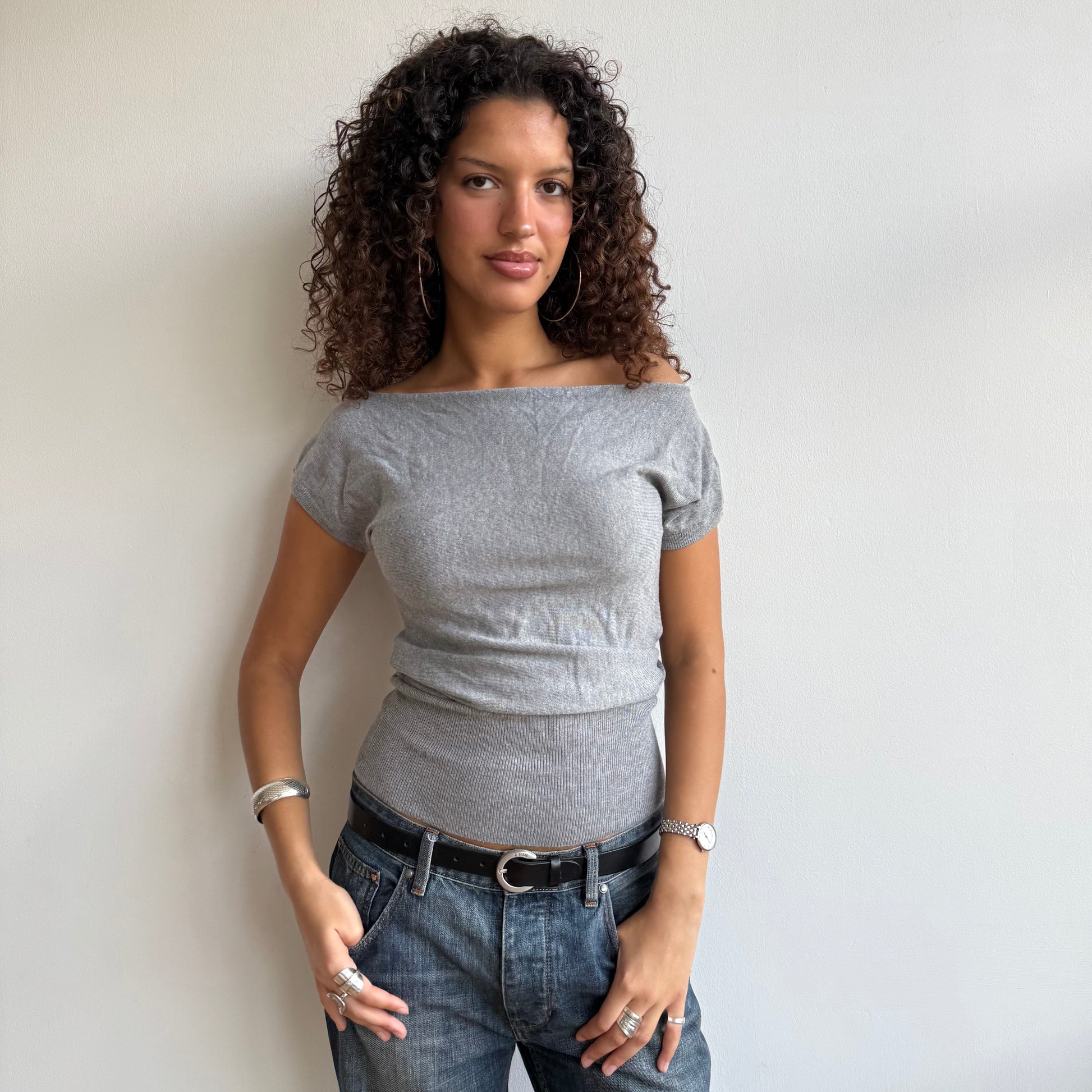 Slouchy grey short sleeve knit