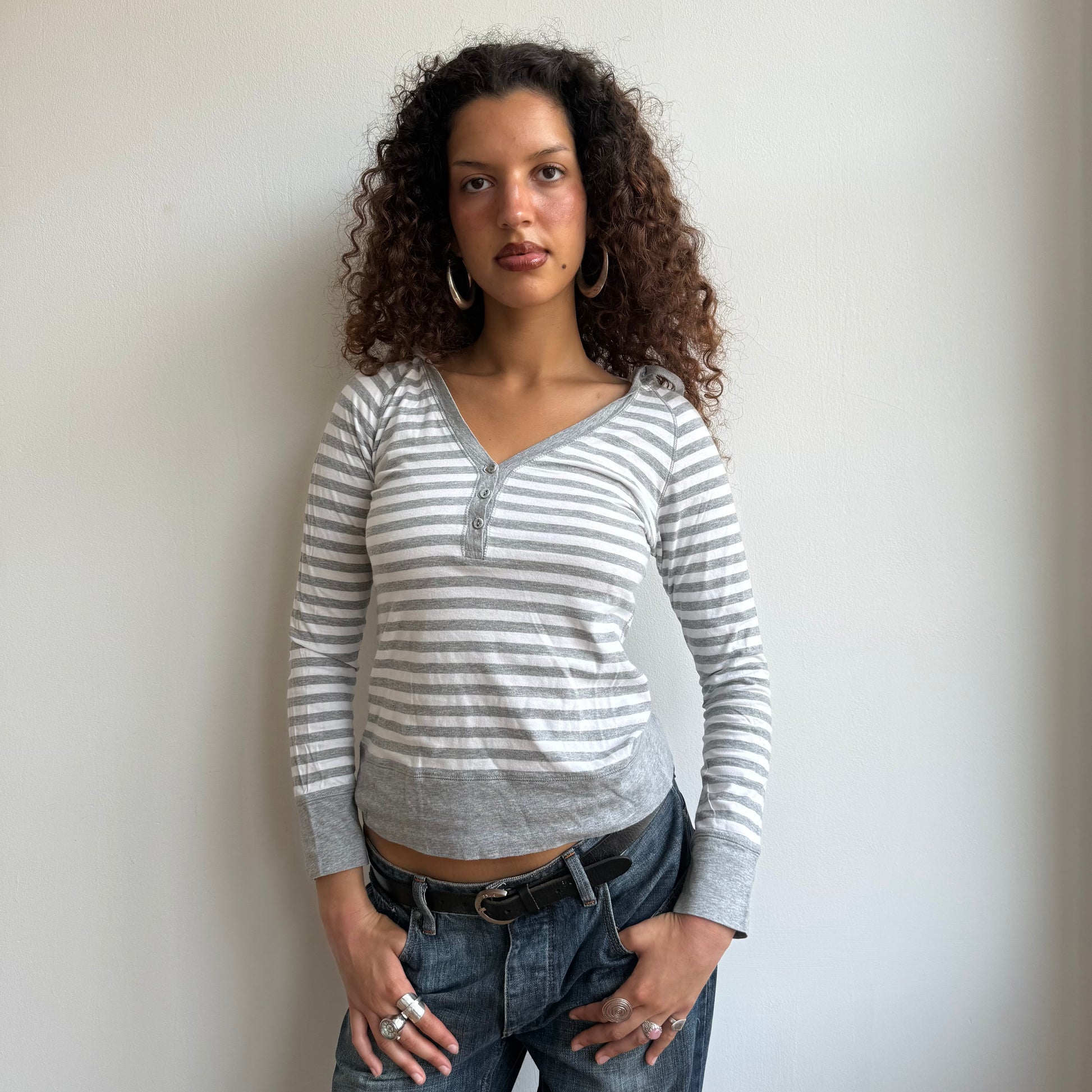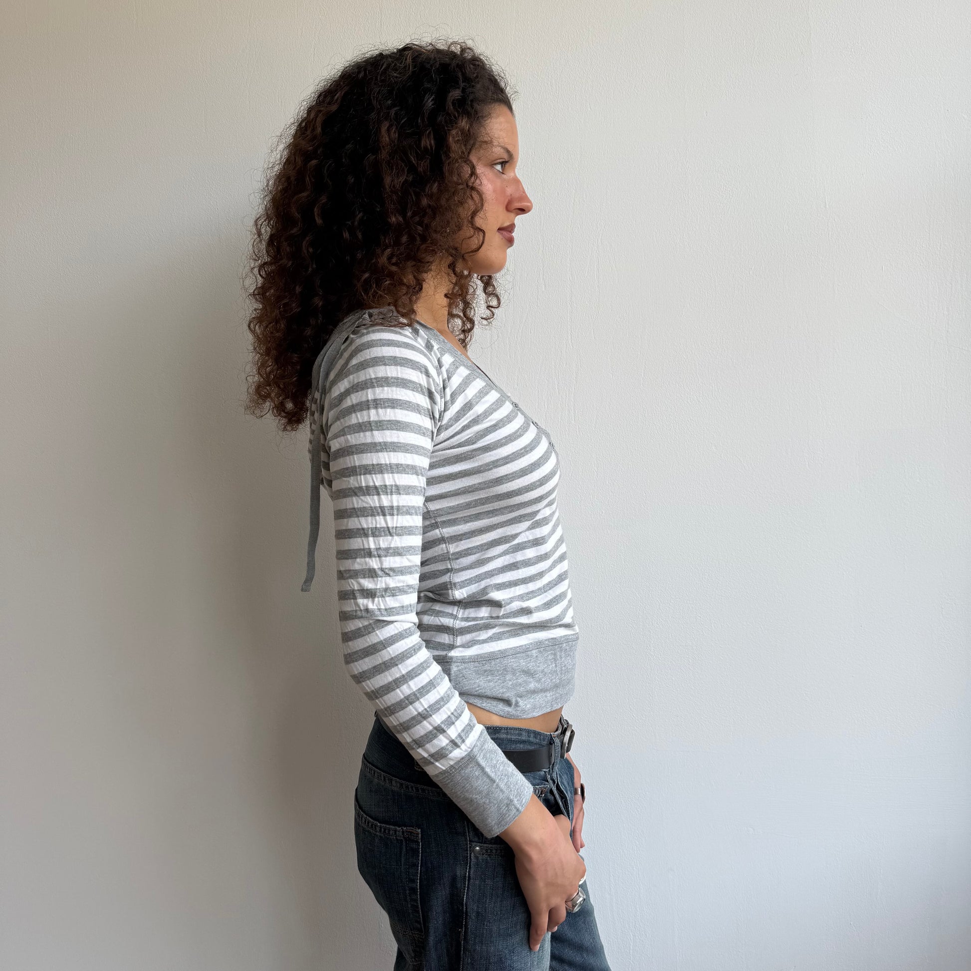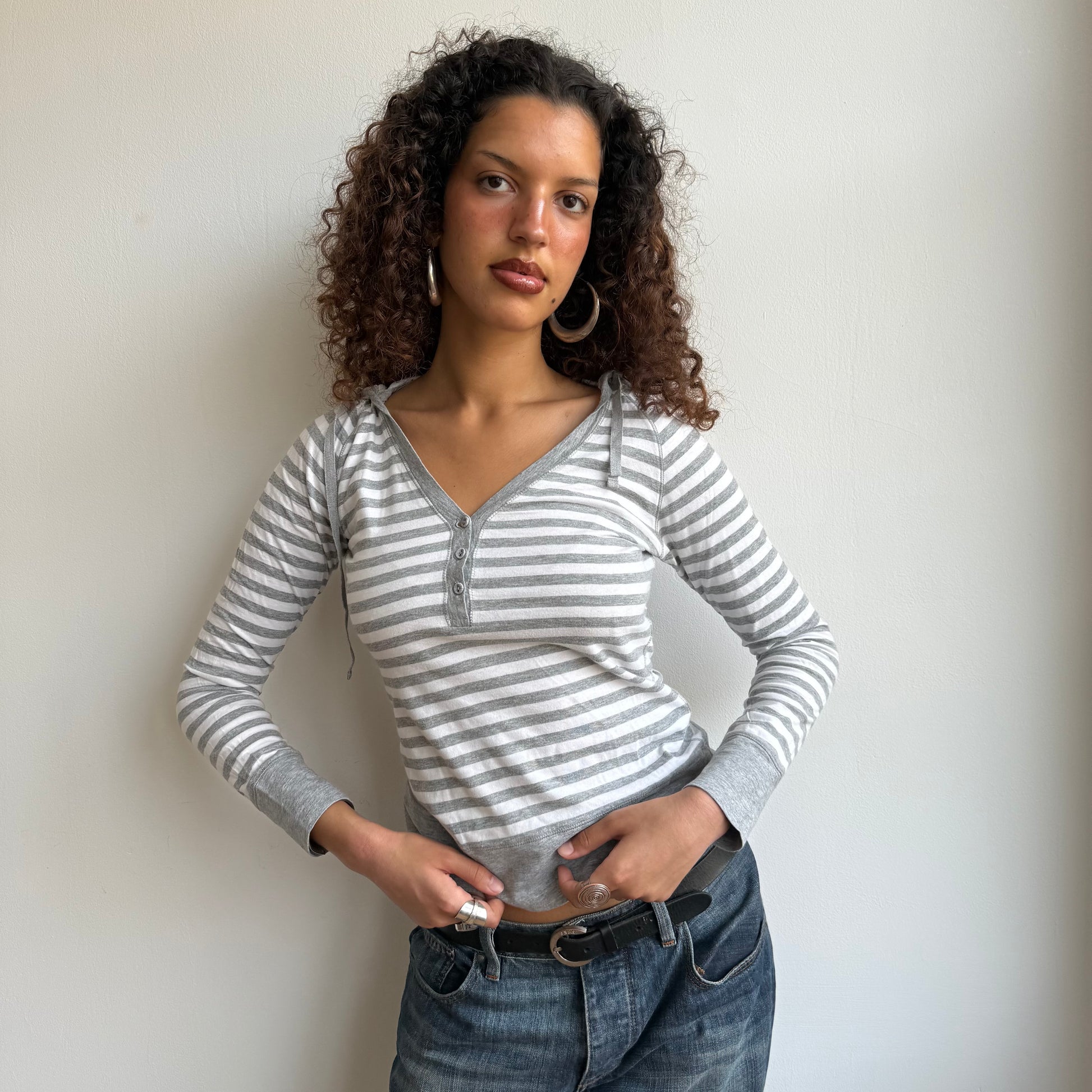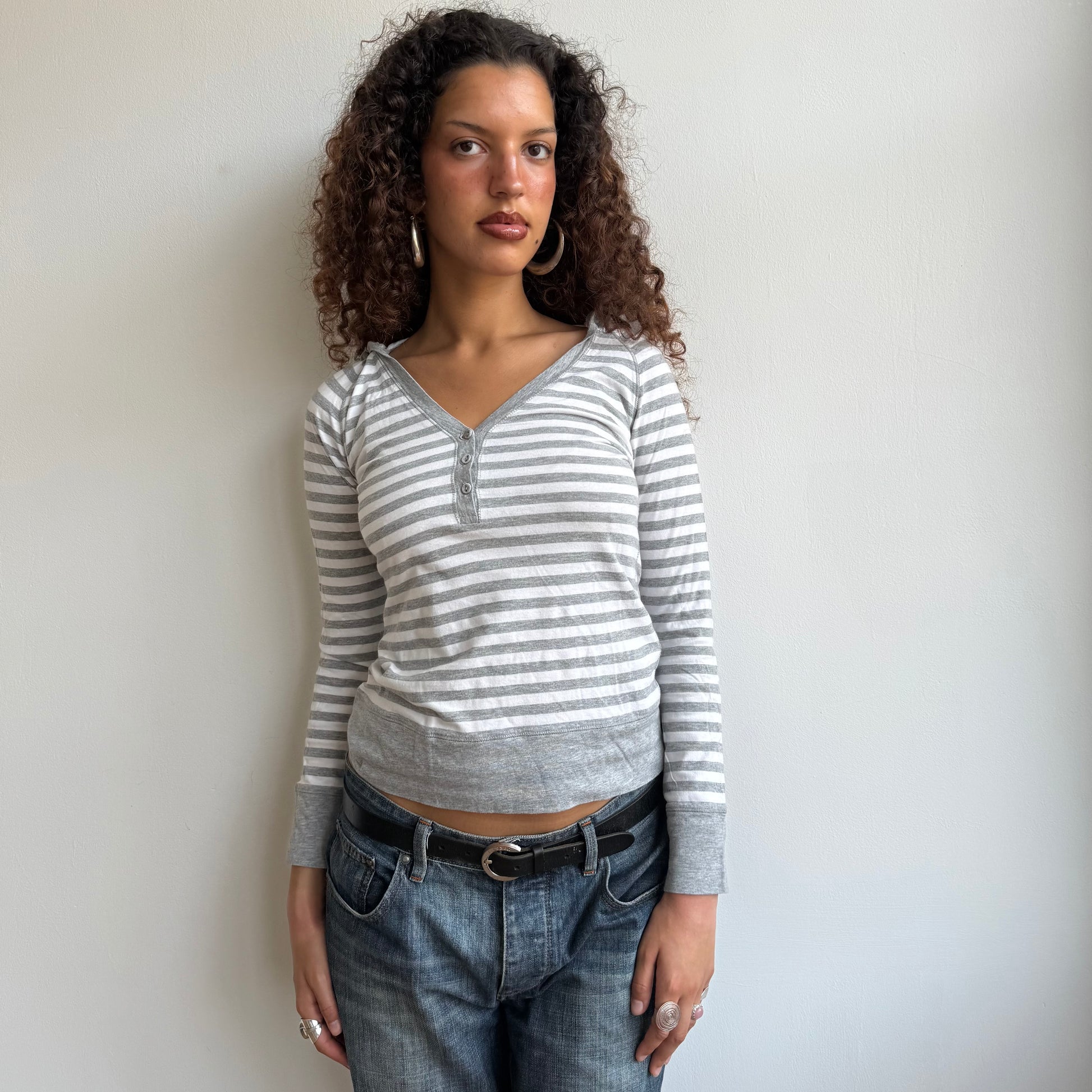 Grey stripe hooded top - Size S