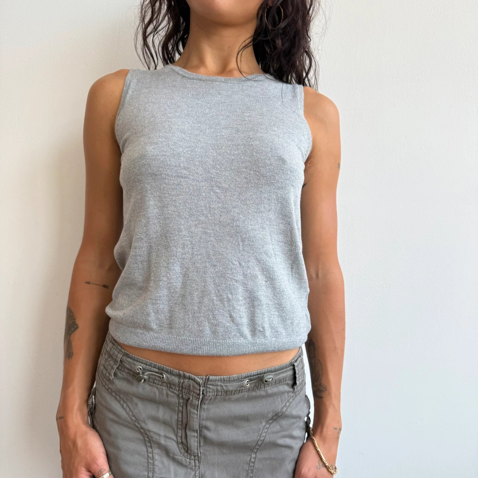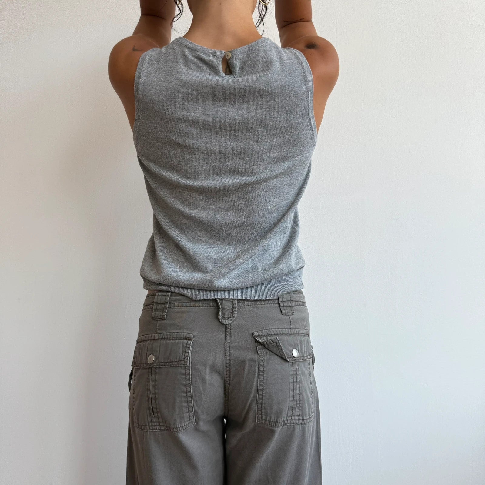 Grey sleeveless sweater vest knit top with keyhole back