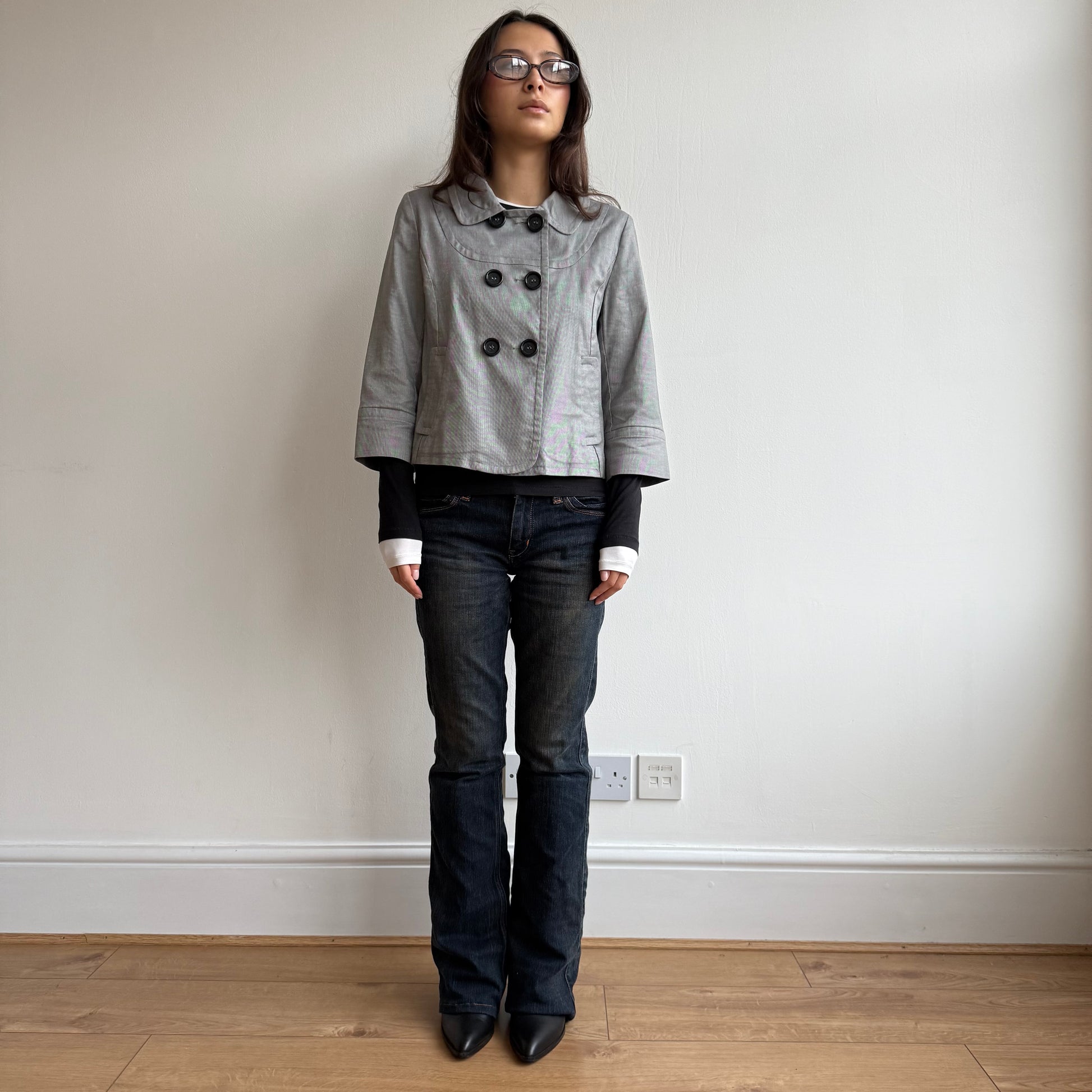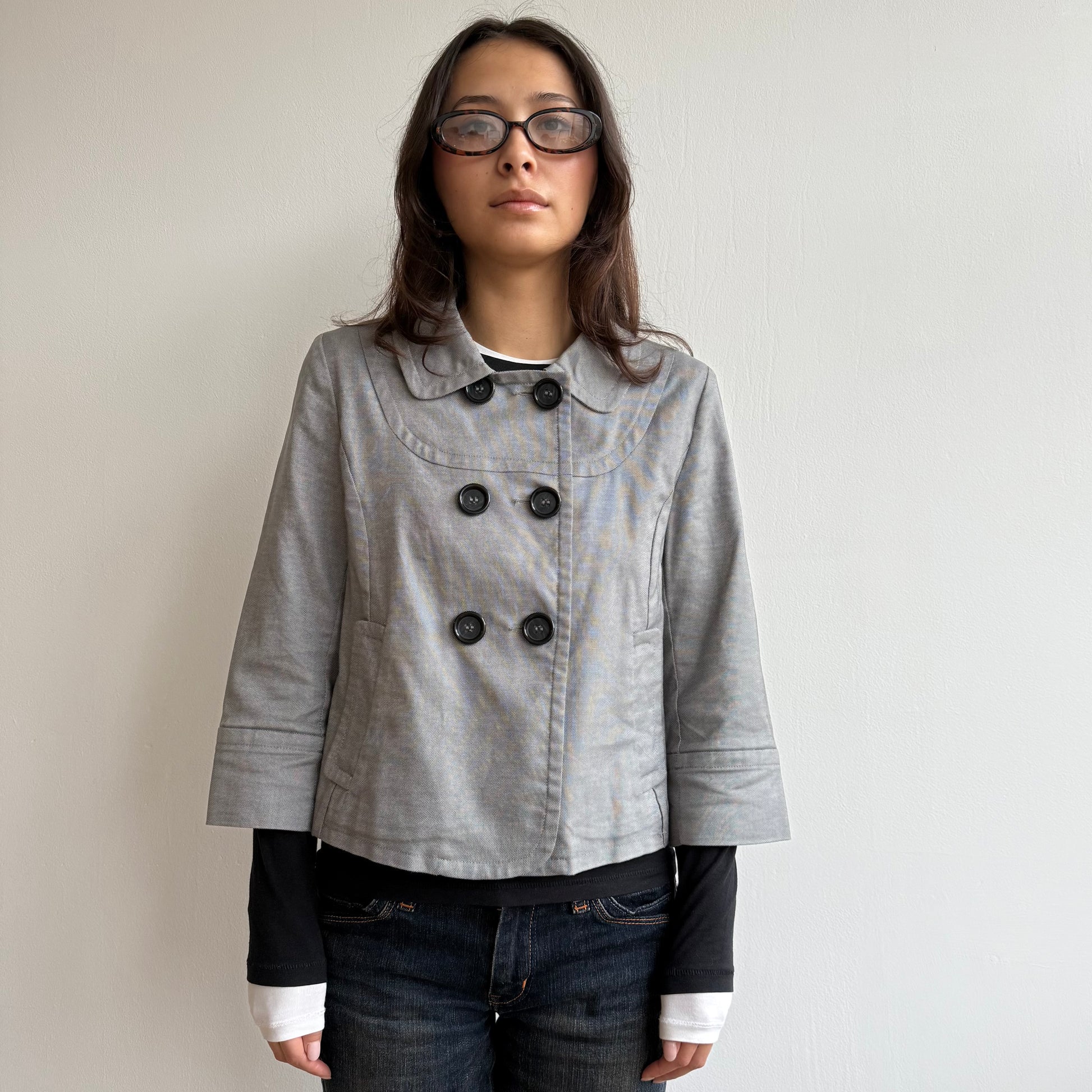 Dark grey double breasted peacoat / swing jacket with 3/4 sleeves