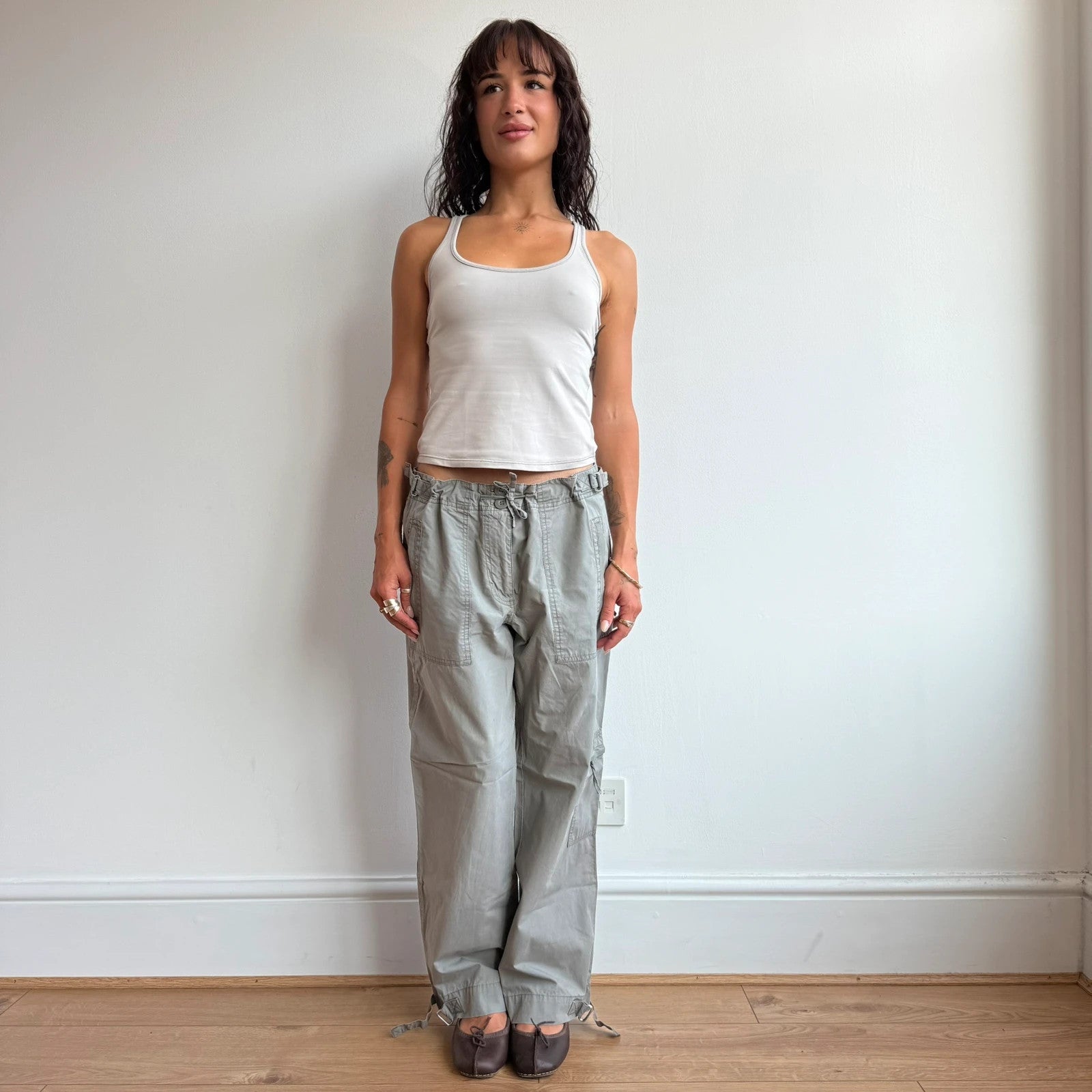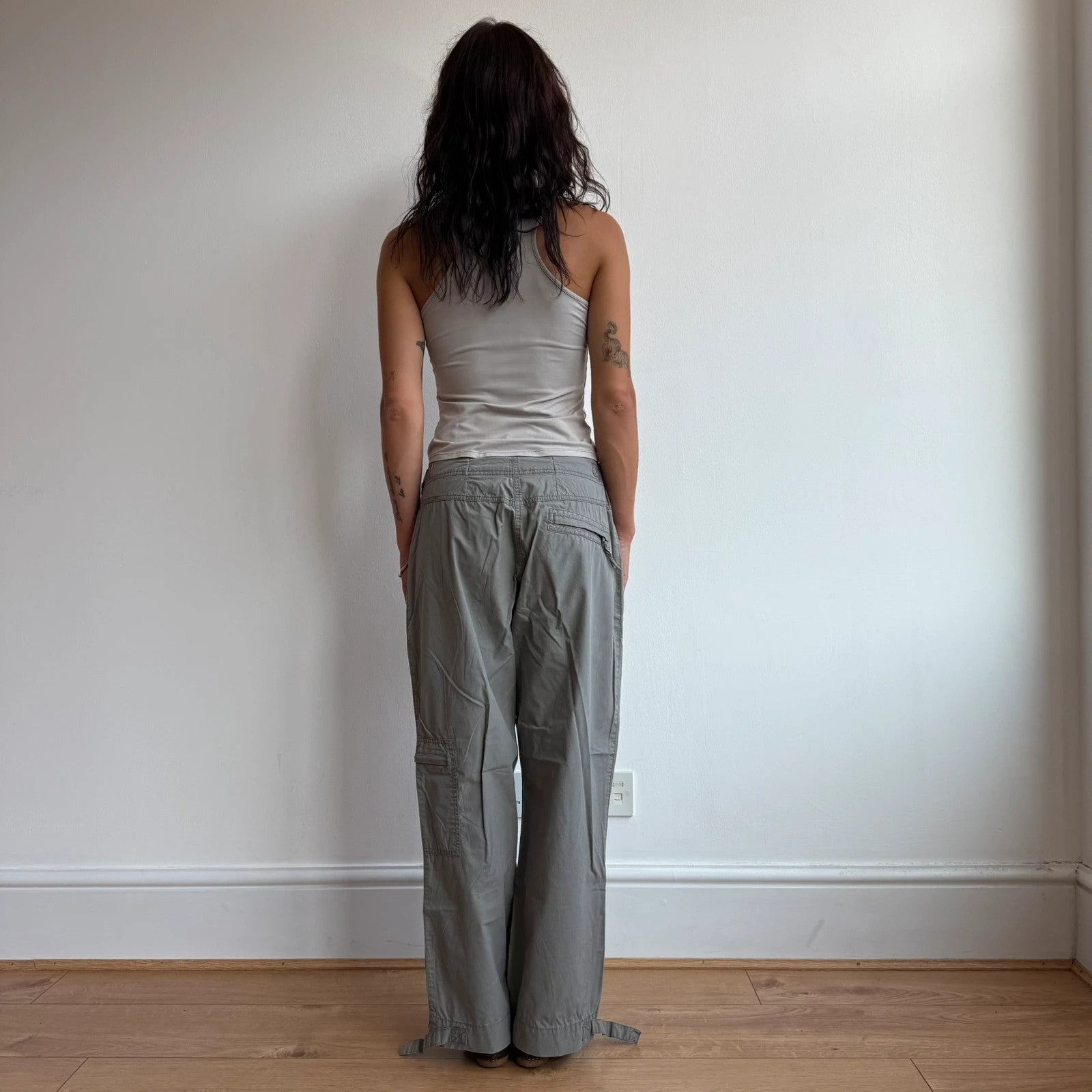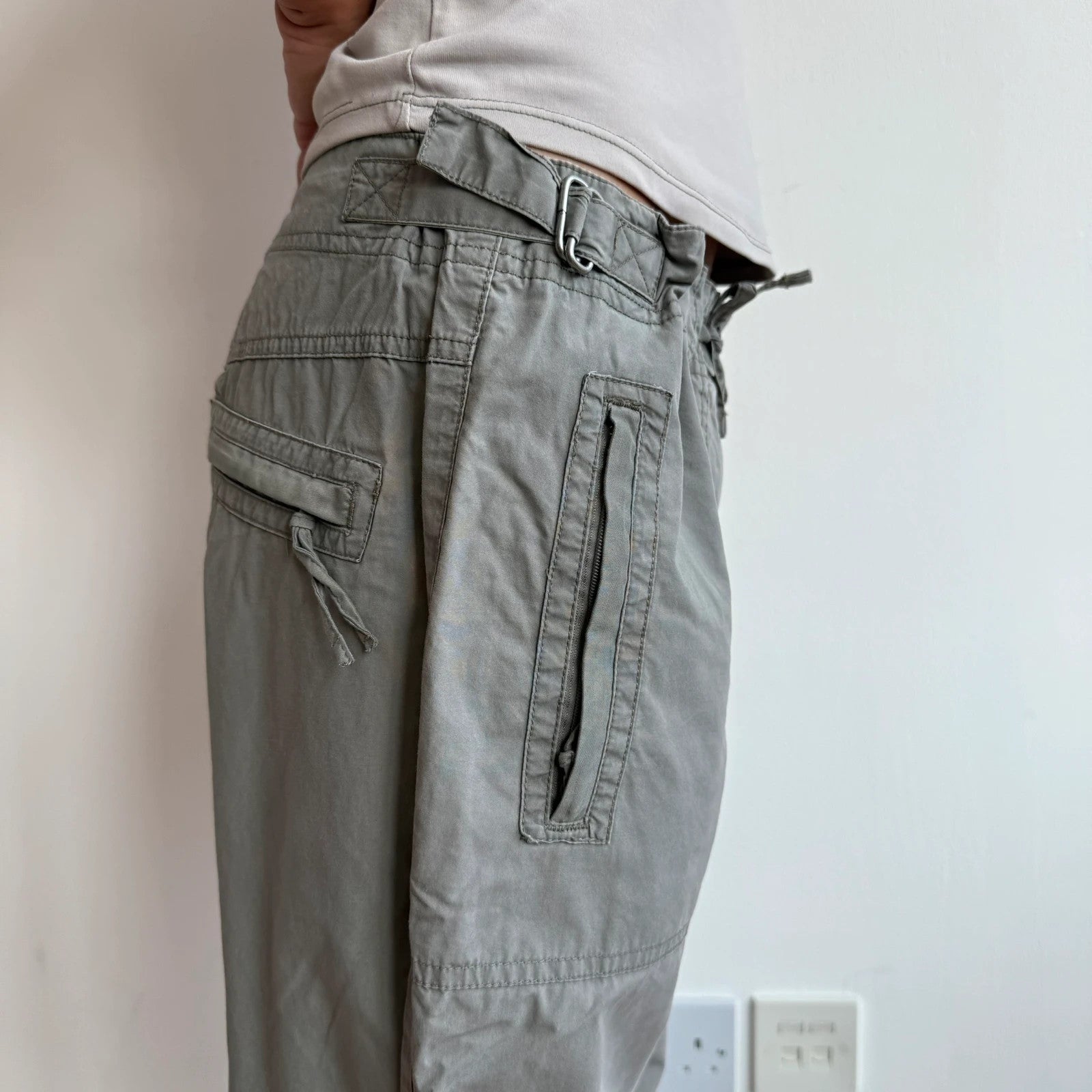Khaki cargo capris / trousers with buckles in the waist and ankles (will be capris on a taller girl)