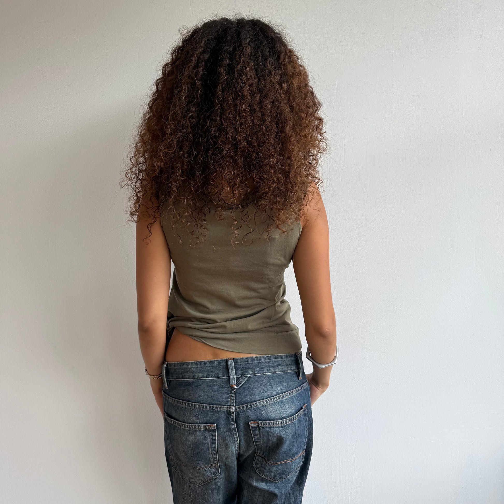 Khaki green tie side wrap top