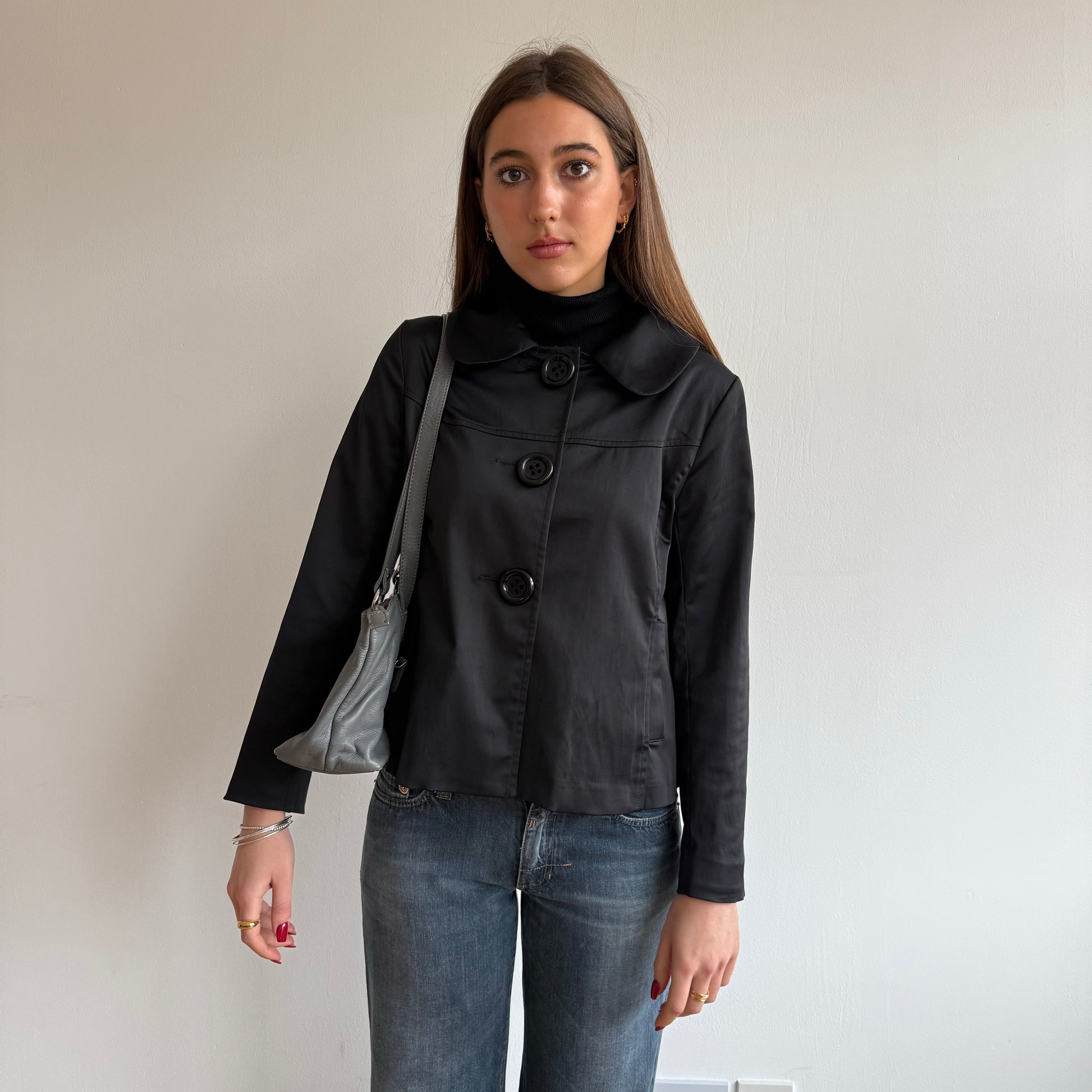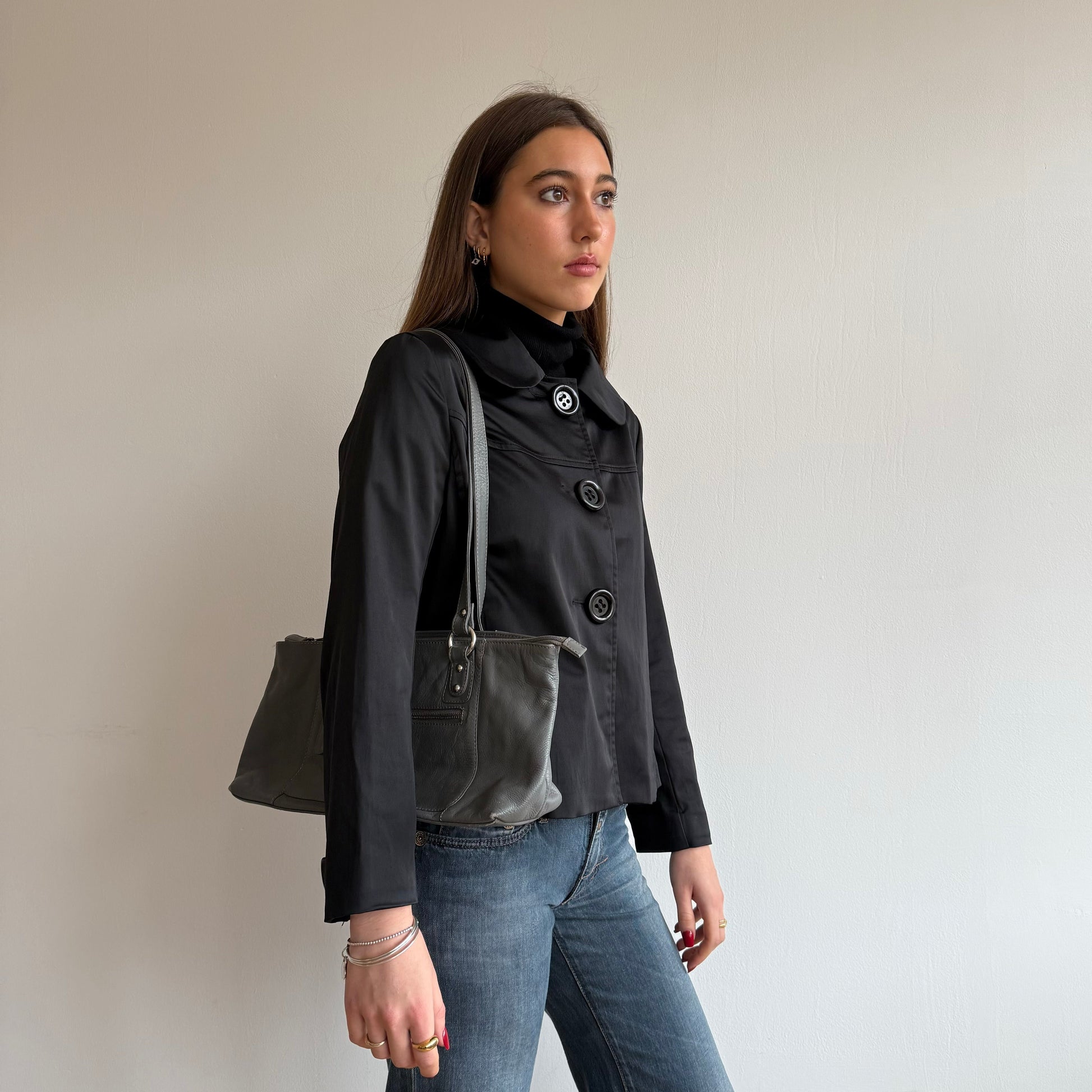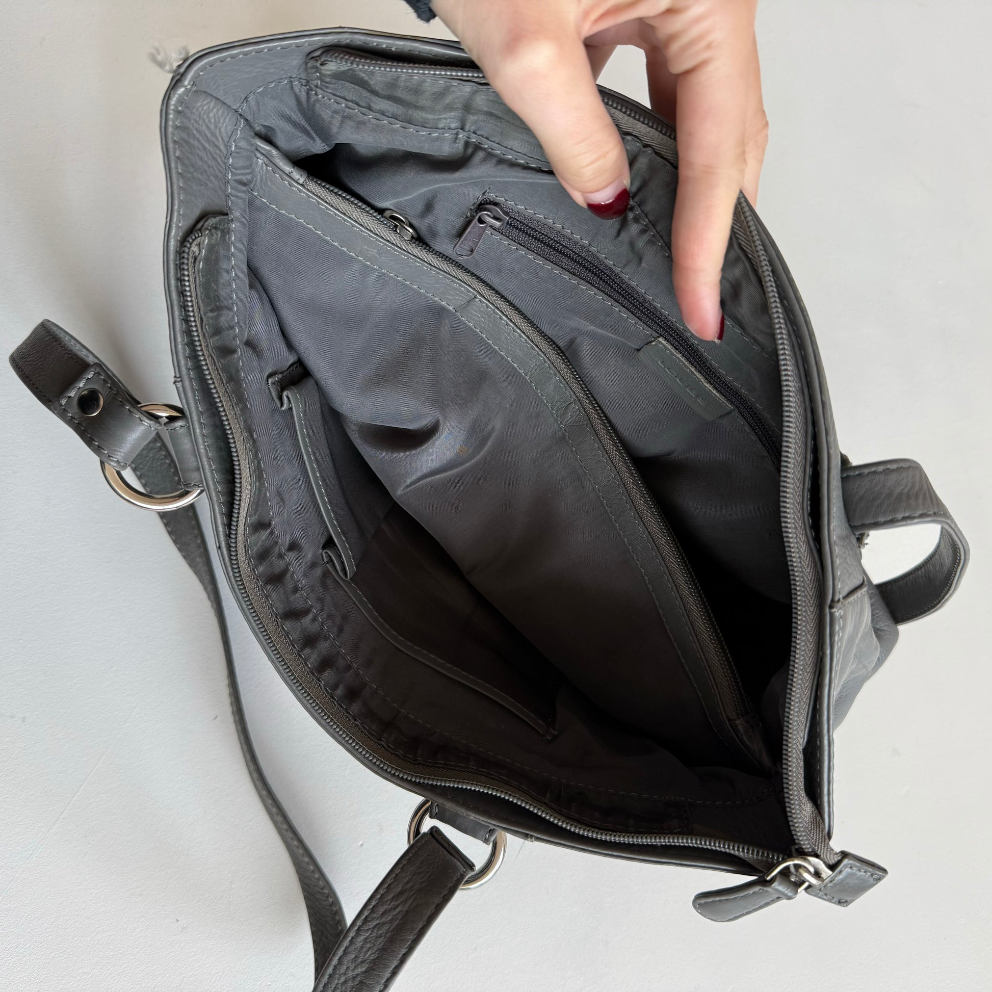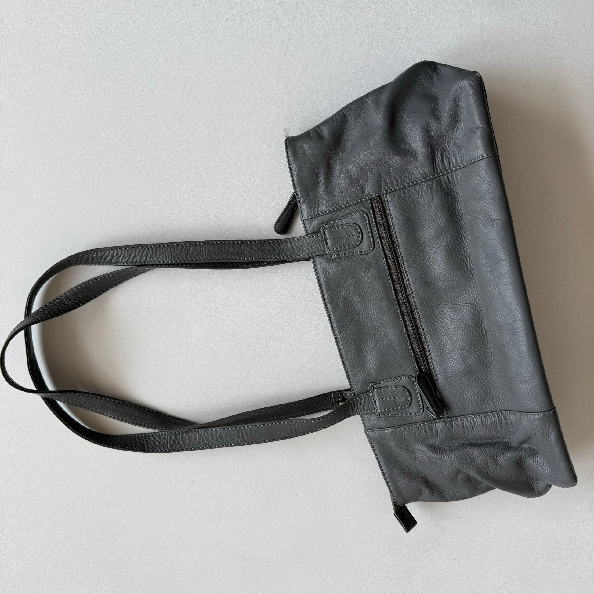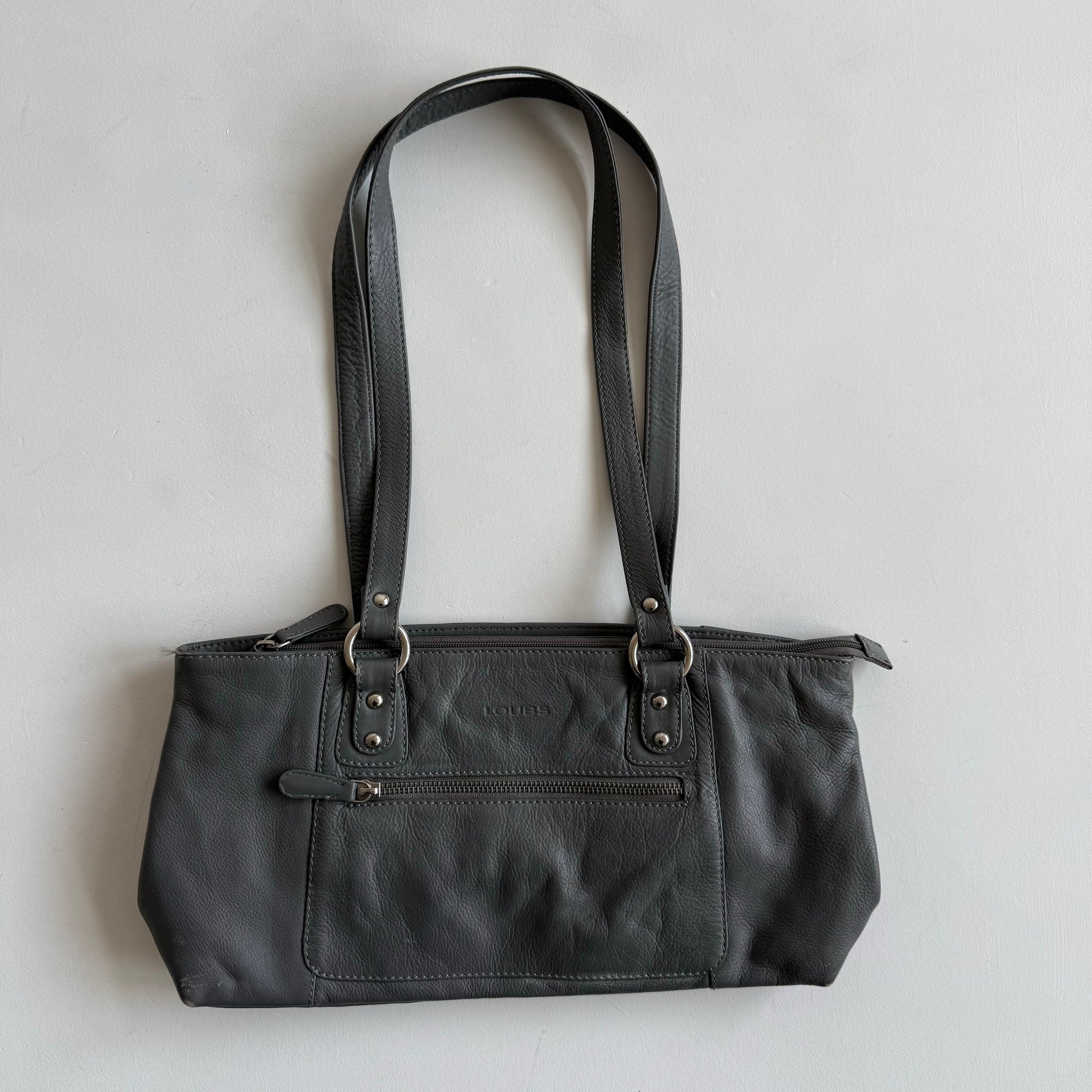 Grey leather baguette bag