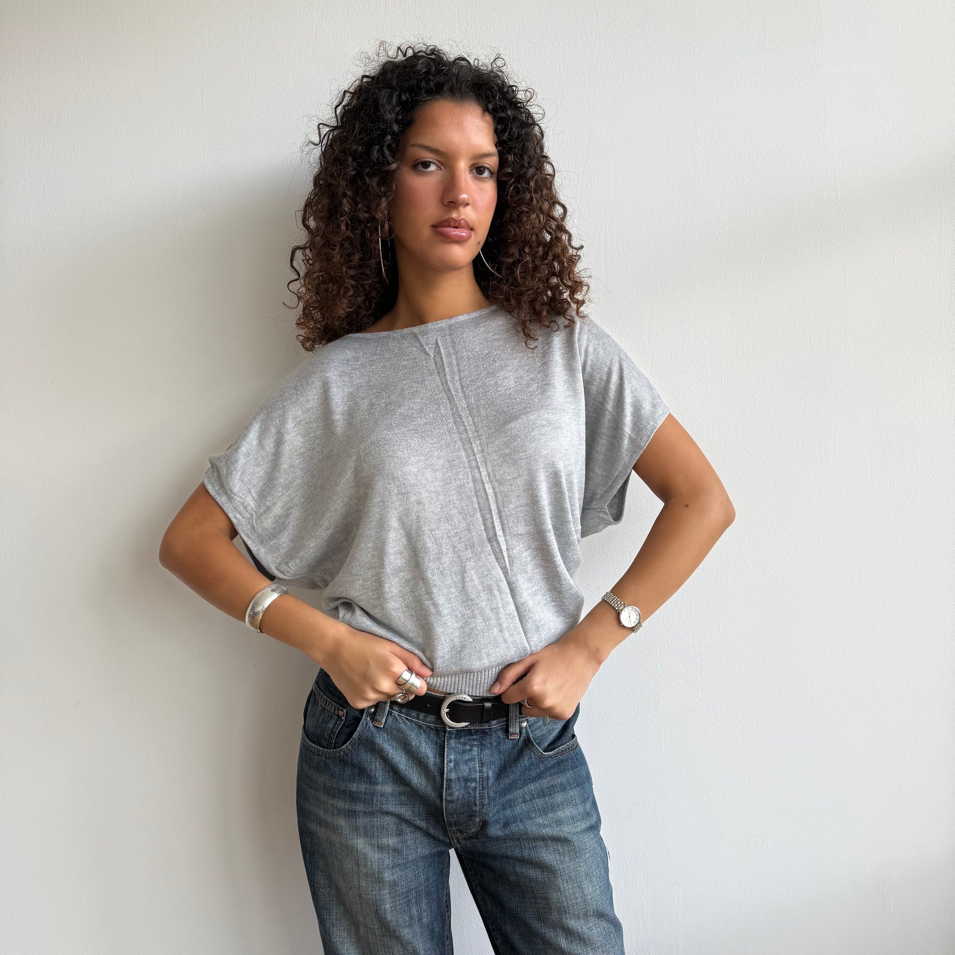 Slouchy grey short sleeve knit