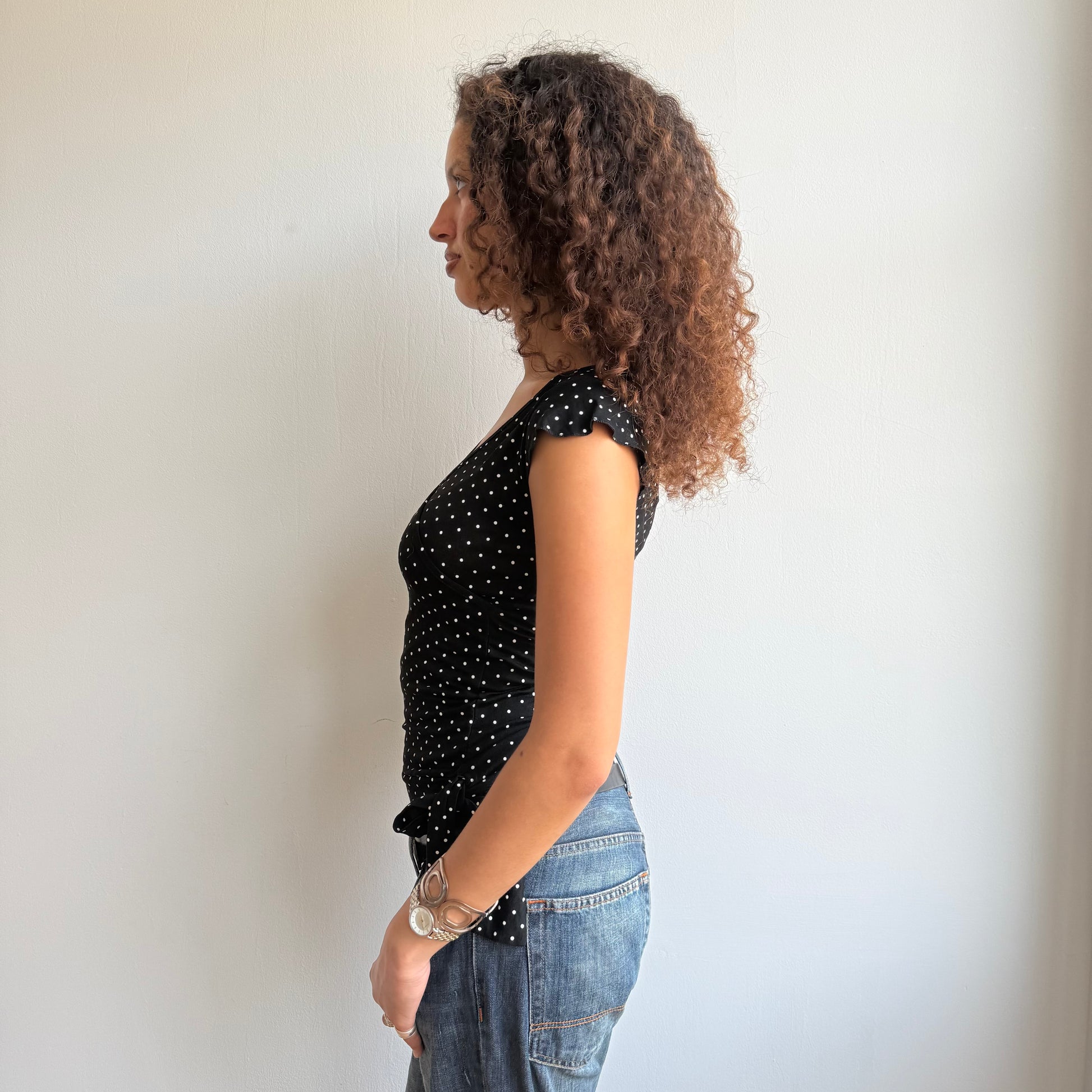 Micro polka dot wrap top - Size S/M