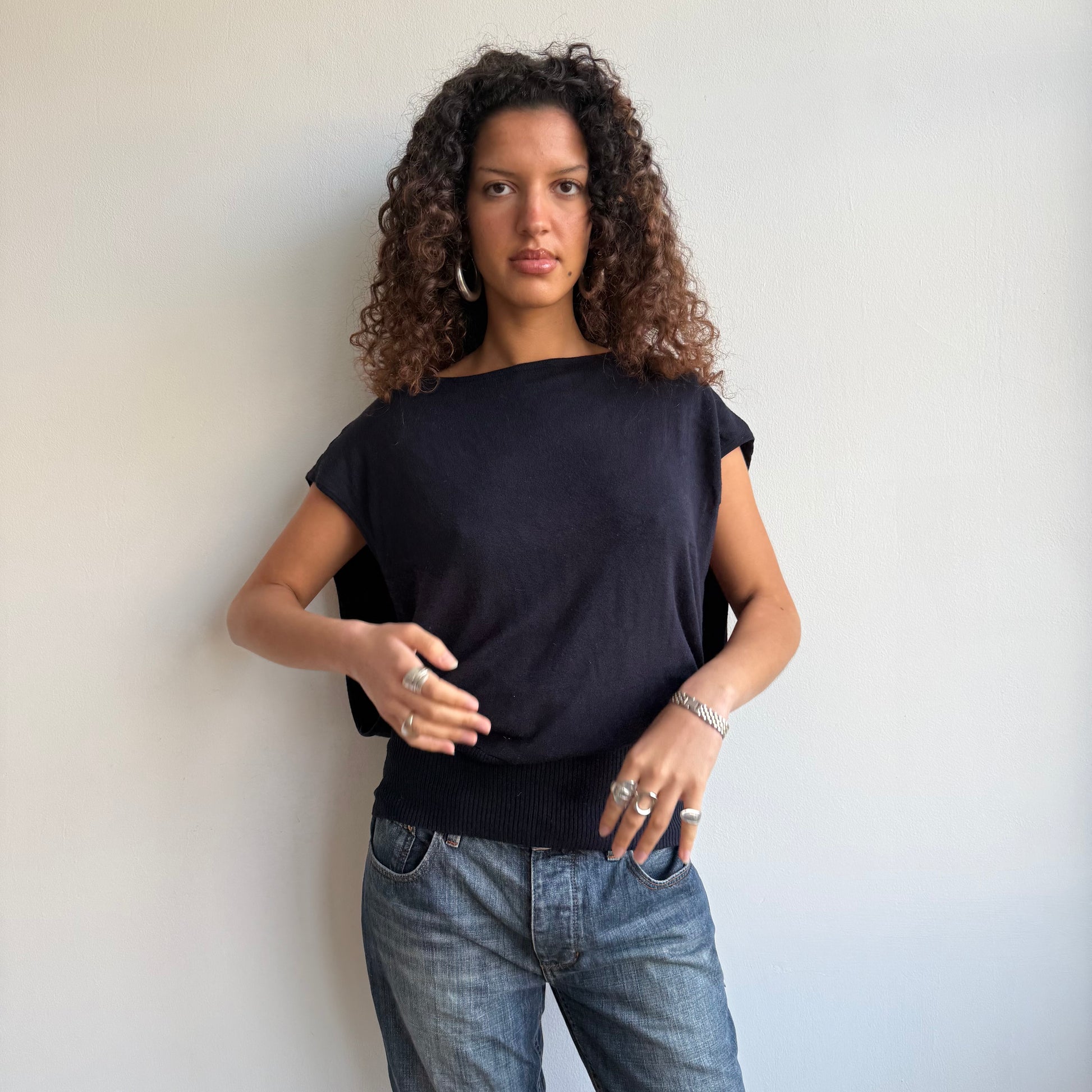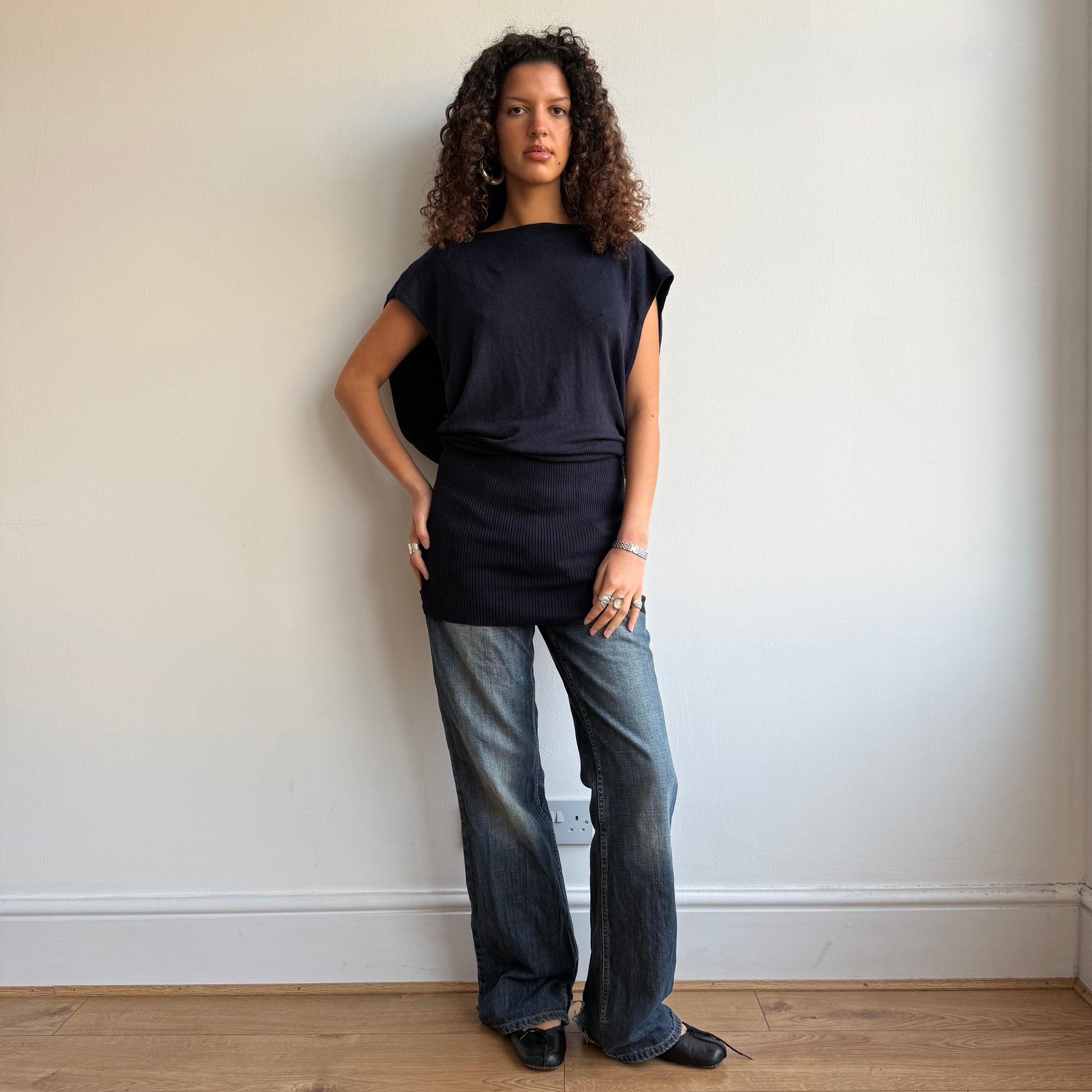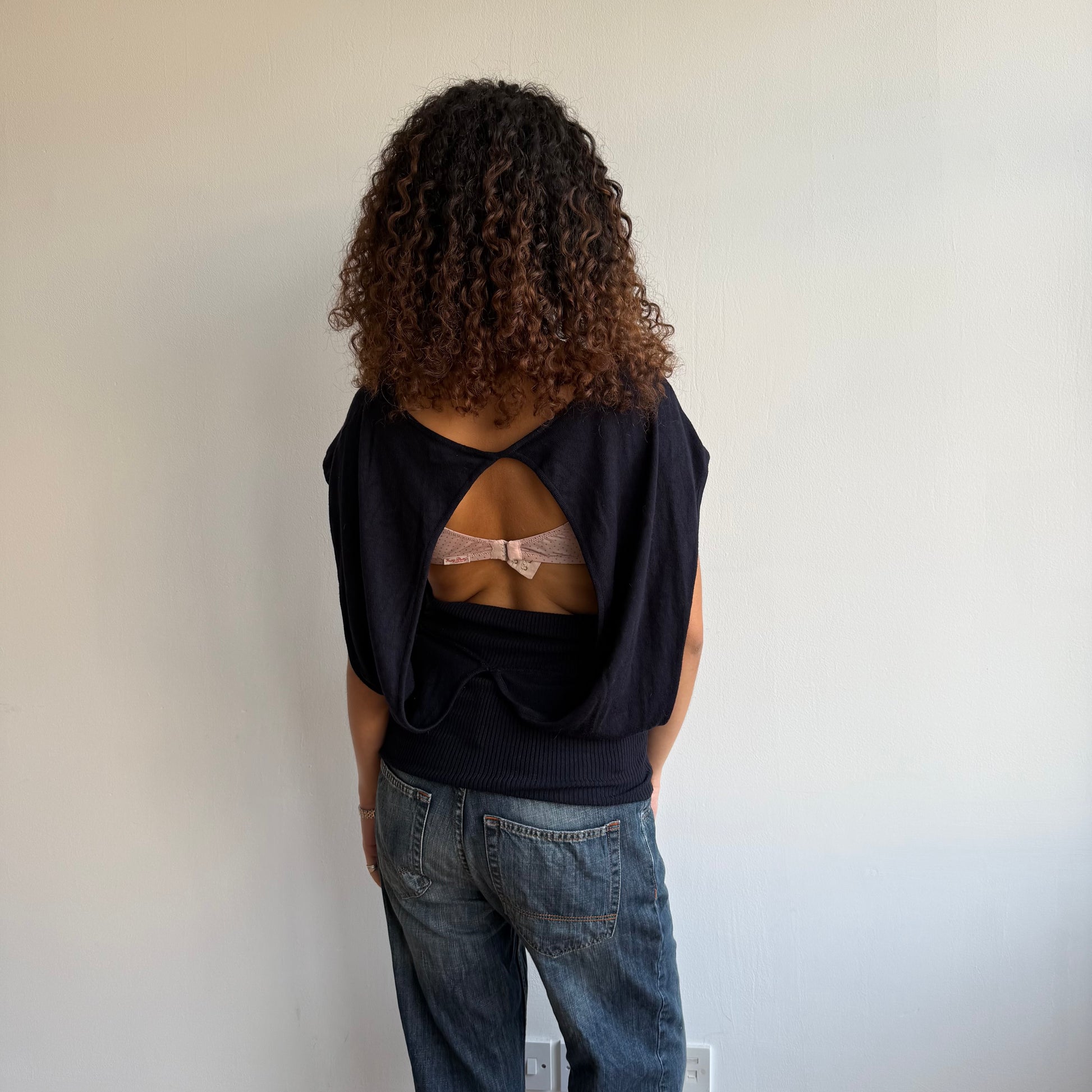 Navy short sleeve open back long length (can be worn shorter) slouchy knit