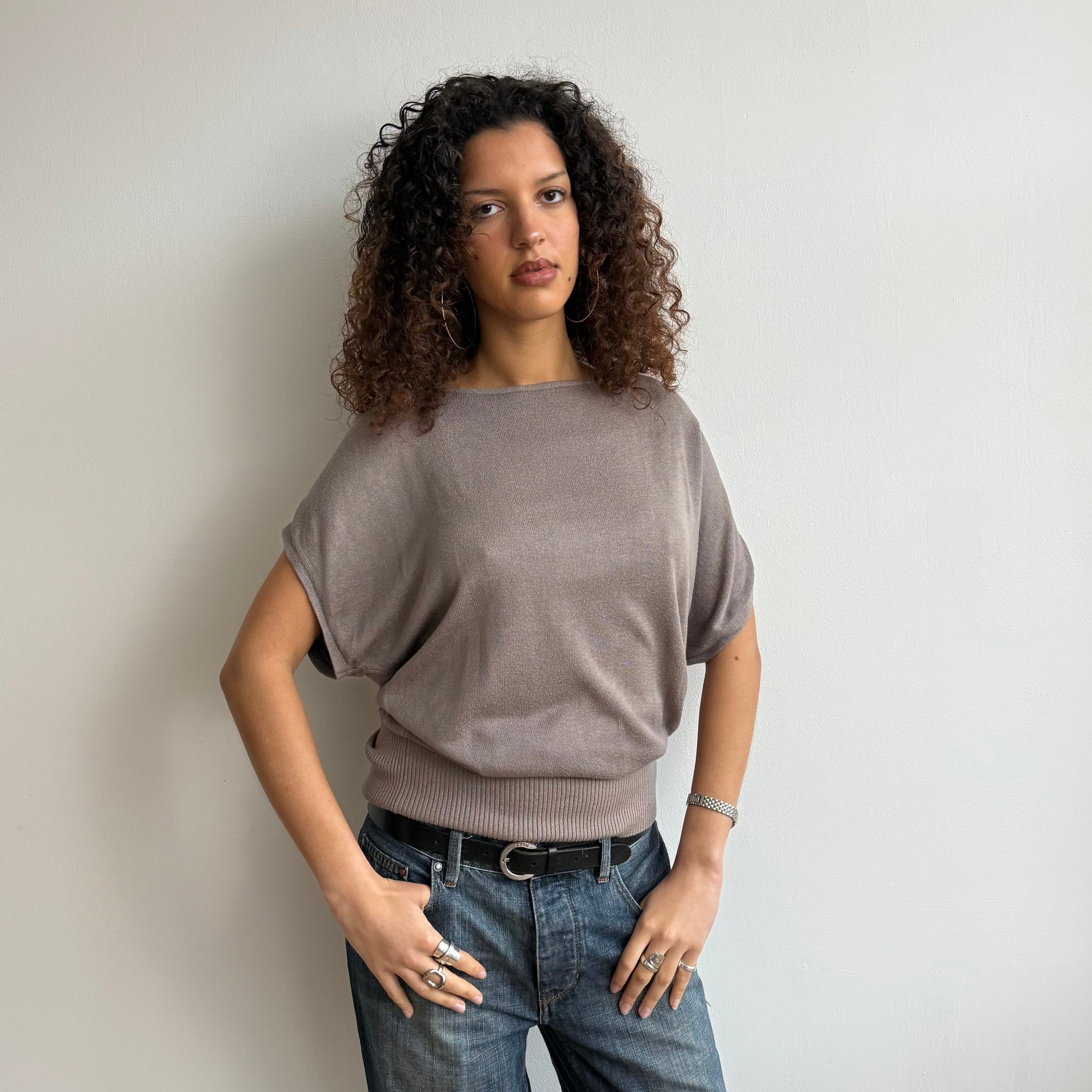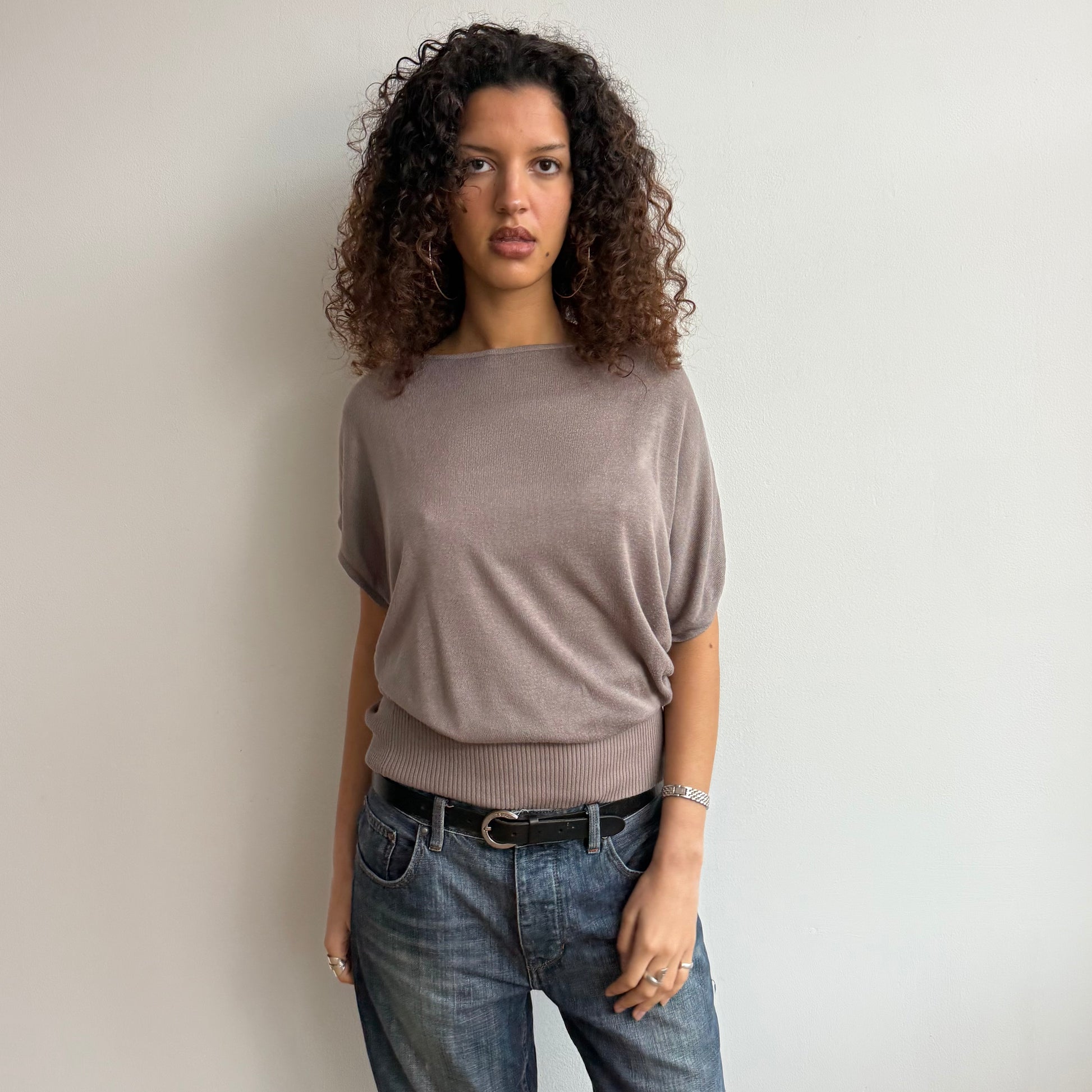 Short sleeve taupe slouchy knit - Size S/M