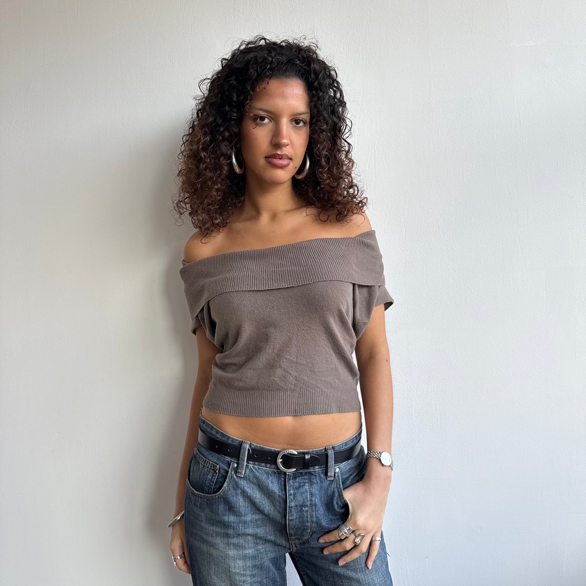 Taupe Bardot knit
