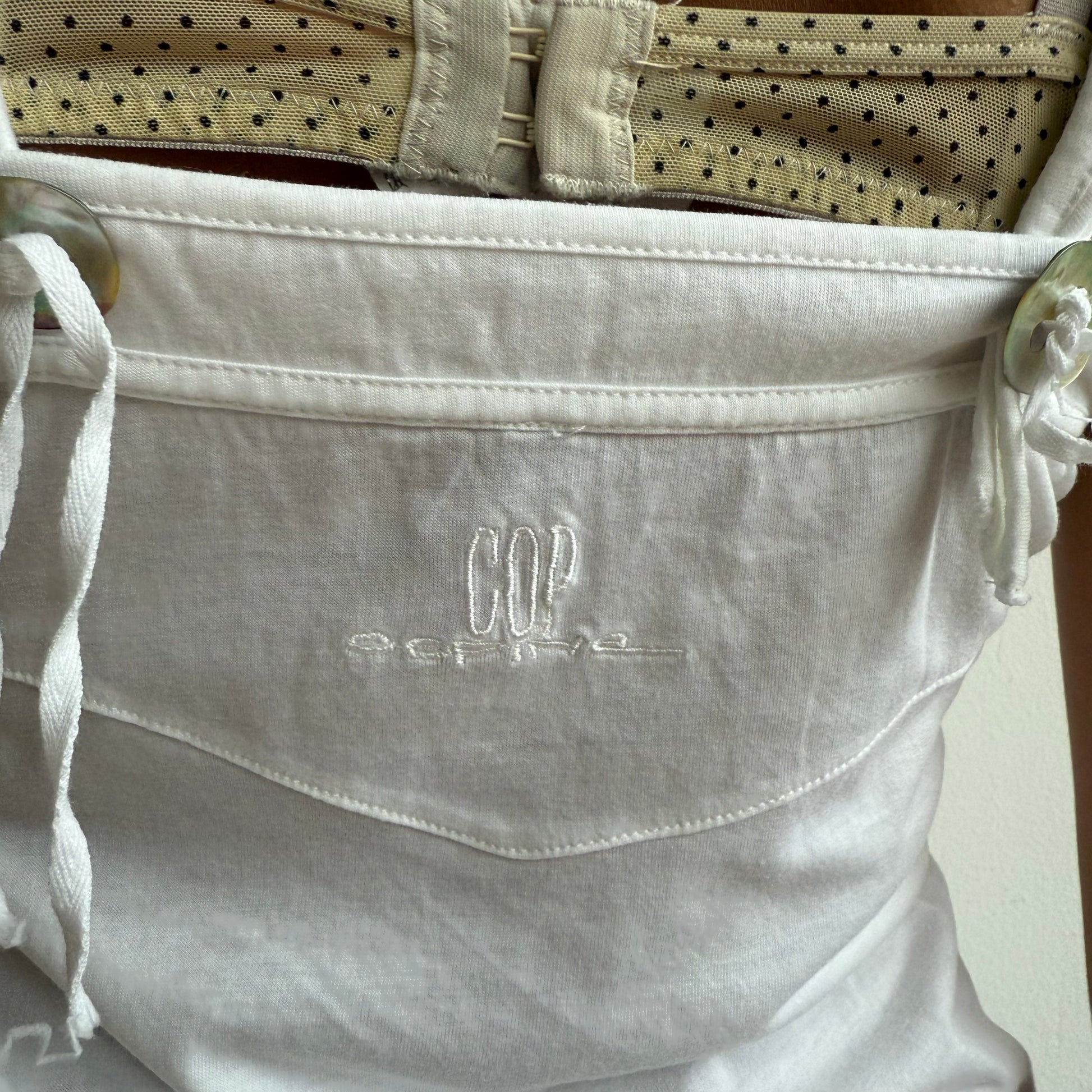 White Cop copine cami with pleated bust detailing and buttons on the straps