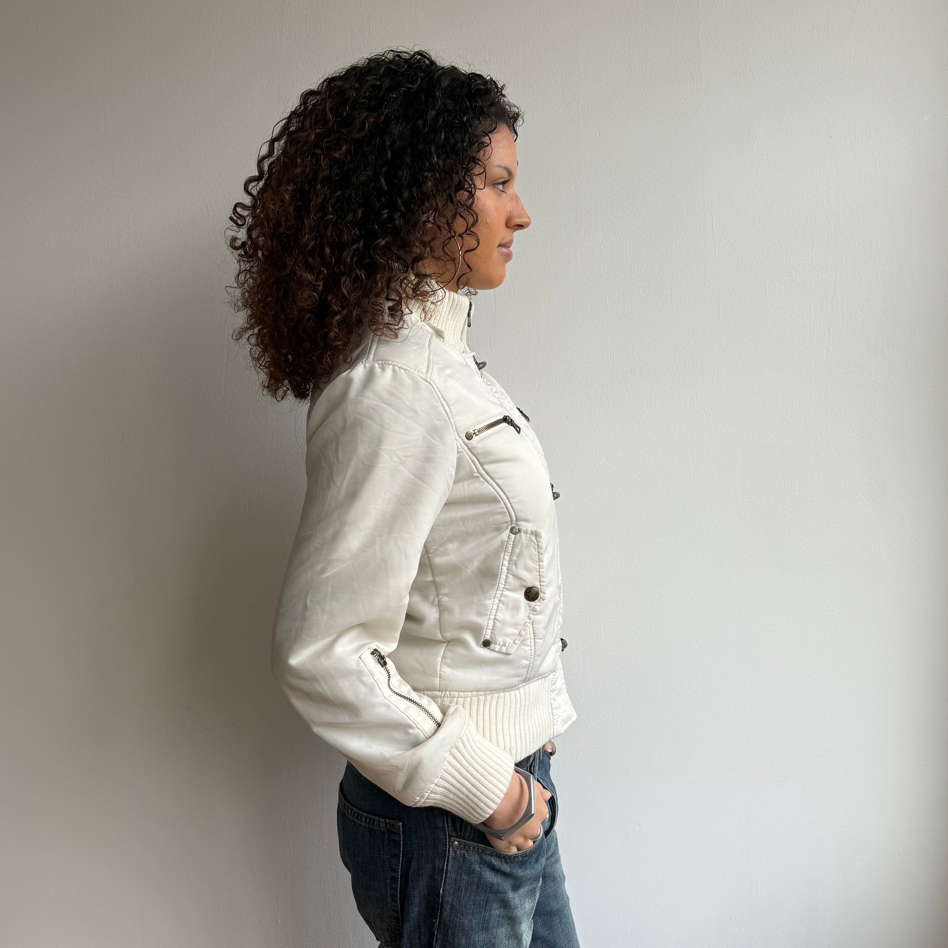 White fireman’s clasp bomber - Size S
